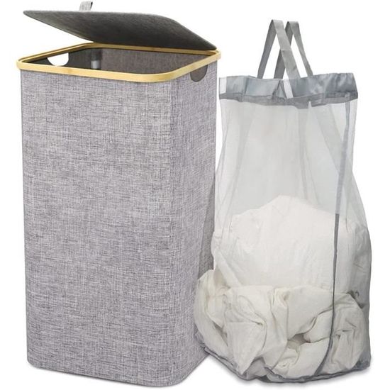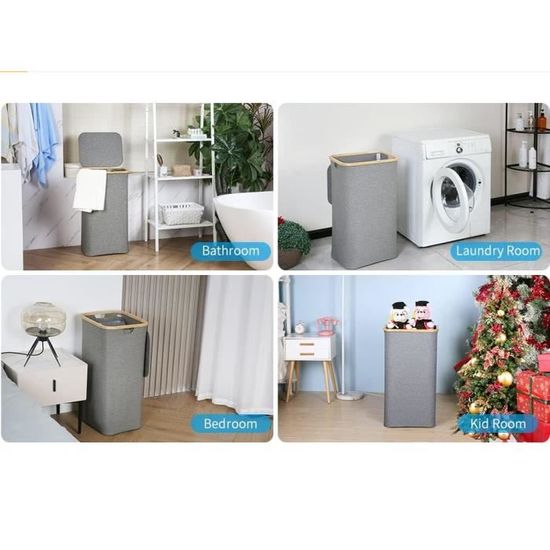La poche intérieure est très facile à nettoyer et à enlever, vous n'avez donc pas besoin de laver le panier à linge fréquemment. Retirez facilement le sac de rangement fixe de la corbeille et mettez-le dans la machine à laver pour le nettoyer. Le nettoyage quotidien ne nécessite qu'un léger coup de chiffon pour enlever la poussière. 【Poche intérieure amovible】Ce paniere a linge sale est doté d'une poche intérieure amovible. Panier à Linge De 100 L Avec 2 Compartiments En Bambou Couvercle Pliable Avec Poignee Sac Amovible Et Lavable Gris 99172431 【Facile à nettoyer】Cette panier linge sale avec couvercle est livrée avec un sac de rangement amovible. 【Matériau en tissu Oxford de haute qualité】Le corbeille a linge est fabriqué en tissu Oxford 300D épaissi. Panier À Linge Double - 123 L - Oxford 300D - Poignées En Bambou... Le couvercle sur le dessus du panier empêche la poussière et les odeurs de se répandre. Il peut être placé dans la chambre à coucher, la buanderie, la salle de bain ou d'autres endroits étroits, le panier à linge peut rendre votre maison pratique et ordonnée et fournir plus d'espace de stockage. Le sac est fabriqué à partir d'une couture de haute qualité et peut également être utilisé comme sac de rangement pour les vêtements. Panier Pliable Tissu Oxford Panier à Linge Avec Couvercle 100 L, Doublure Amovible,Corbeille A Linge En Bambou,Poignées En Bambou,Paniers à Linge Pliables,Bac A Linge Pour Dortoirs, Buanderies, Chambres à Coucher(Ferreux Corbeille Linge Couvercle Grand espace de rangement : Ce panier à linge spacieux permet de ranger tout votre linge, qu'il s'agisse de vêtements, de couvertures, de chaussettes ou... 3 minutes pour l'assembler, elle peut être pliée et facilement rangée après utilisation, ce qui permet d'économiser votre espace précieux.