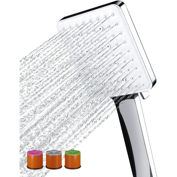 6 modes de jet individuels pour répondre à tous les besoins : d'un jet de pluie doux (parfait pour les peaux sensibles) au mode massage puissant (soulage les tensions musculaires) en passant par le mode de rinçage (idéal pour nettoyer la douche), cette pomme de douche offre une flexibilité maximale. Bouton d'arrêt pratique : arrêt facile de l'eau (en appuyant sur un bouton) pour économiser l'eau lors du savon. Kit complet avec tuyau argenté (1,5 m) et support – Montage flexible, idéal comme pommeau de douche avec tuyau ou remplacement pour les anciennes douchettes. Ainsi, vous économisez de l'argent avec ce pommeau de douche avec fonction d'arrêt et réduisez considérablement votre facture d'eau - Support à crochet stable pour un rangement peu encombrant. Pomme de douche, 20,3 cm, haute pression, effet pluie, avec bras d'extension, pommeau de douche anti-fuite avec support, hauteur et angle réglables... Le pommeau de douche résiste aux dépôts de calcaire grâce aux buses autonettoyantes et est facile à détartrer. Bouton d'arrêt pratique pour plus d'efficacité: la fonction d'arrêt intégrée permet de mettre en pause le débit d'eau en appuyant sur un bouton, idéal pour savonner, raser ou laisser agir les cheveux. Pommeau de douche à économie d'eau avec fonction d'arrêt - 6 modes de jet avec tuyau et support Économie d'eau et respectueux de l'environnement : notre pommeau de douche économique réduit la consommation d'eau jusqu'à 30 % – Idéal pour une douche durable. Pommeau Douche économique Pommeau De Douche Haute Pression à 6 Réglages Avec Interrupteur Douchette Douche Salle De Bain Pommeau De Douche À Économie D'Eau, Avec 6 Types De Jets, Douchette... Robuste et durable pour un confort quotidien : fabriqué à partir de composants métalliques résistants aux chocs et à la corrosion. Kit complet d'accessoires de qualité : livré avec un tuyau flexible en métal de 1,5 m (antirouille et anti-pliures) et un support robuste avec crochets. Basculez facilement entre les modes grâce au bouton rotatif ergonomique. Idéal pour remplacer les anciennes douchettes à main calcifiées – pour une sensation hygiénique de douche Pommeau De Douche À 4 Niveaux Haute Pression Avec Douchette À Effet Le support est réglable et s'adapte à n'importe quelle zone de douche. Conception intelligente d'économie d'eau : ce pommeau de douche économiseur d'eau réduit la consommation d'eau jusqu'à 30 % – sans perte de confort ! Grâce au mélange innovant air/eau, vous pouvez profiter d'un jet plein et doux tout en respectant activement l'environnement. 1 tuyau très flexible (argenté, 1,5 m).