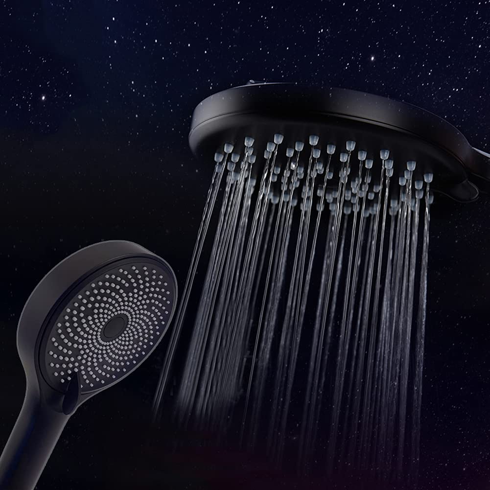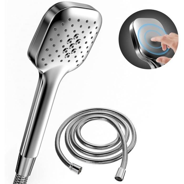 Si vous avez des questions sur nos produits, n'hésitez pas à nous contacter ! Pommeau De Douche 3+1 Jets Noir Douchette Haute Pression - 3 + 1 Types De Jets - Tuyau Pommeau De Douche Avec Filtre L'espace interne de la pomme de douche présente une structure raisonnable et la sortie d'eau est uniformément répartie. Matériau ABS de qualité supérieure ]La surface du pommeau de douche est dotée d'un processus de protection contre la rouille et la corrosion à 7 couches, dure et brillante, ce qui donne un toucher délicat et isole efficacement, ce qui est exquis, léger, durable et sûr BROSSE DE MASSAGE EN SILICONE : La brosse de massage en silicone pour la pomme de douche masse délicatement le cuir chevelu pour améliorer l'expérience du shampoing et la circulation sanguine. Elle aide à nettoyer le dos et d'autres parties du corps, soulage la fatigue, détend le corps et l'esprit et procure une expérience de bain agréable. Pommeau de douche, pommeau de douche universel haute pression pour salle de bain avec 3 modes, pommeau de douche anticalcaire [Pommeau 3 Modes]Ce pommeau douche économie d'eau amélioré dispose de 3 réglages de jet il peut être réglé entre un jet doux et un massage à haute pression selon vos besoins vous permettant de personnaliser... La pomme de douche est équipée d'un bouton d'arrêt instantané qui vous permet d'interrompre l'écoulement de l'eau d'une simple pression, ce qui facilite les économies d'eau et d'énergie. La conception technologique avancée de la pomme de douche garantit un débit d'eau équilibré de toutes les buses, elle combine haute pression et économie d'eau, ce qui en fait le meilleur choix pour la salle de bains. Le matériau en silicone doux et sûr convient mieux aux bébés et aux enfants à la peau sensible. Douchette, Pommeau de Douche Anti Calcaire Economie Deau Pomme de SYSTÈME DE FILTRATION AVANCÉ : Le pommeau de douche avec flexible est équipé d'un puissant système de filtration qui filtre facilement les impuretés de l'eau telles que les sédiments, les odeurs, etc. INSTALLATION & ACCESSOIRES:L'installation de cette douche est très facile, sans outils, et convient à la plupart des tuyaux de douche.