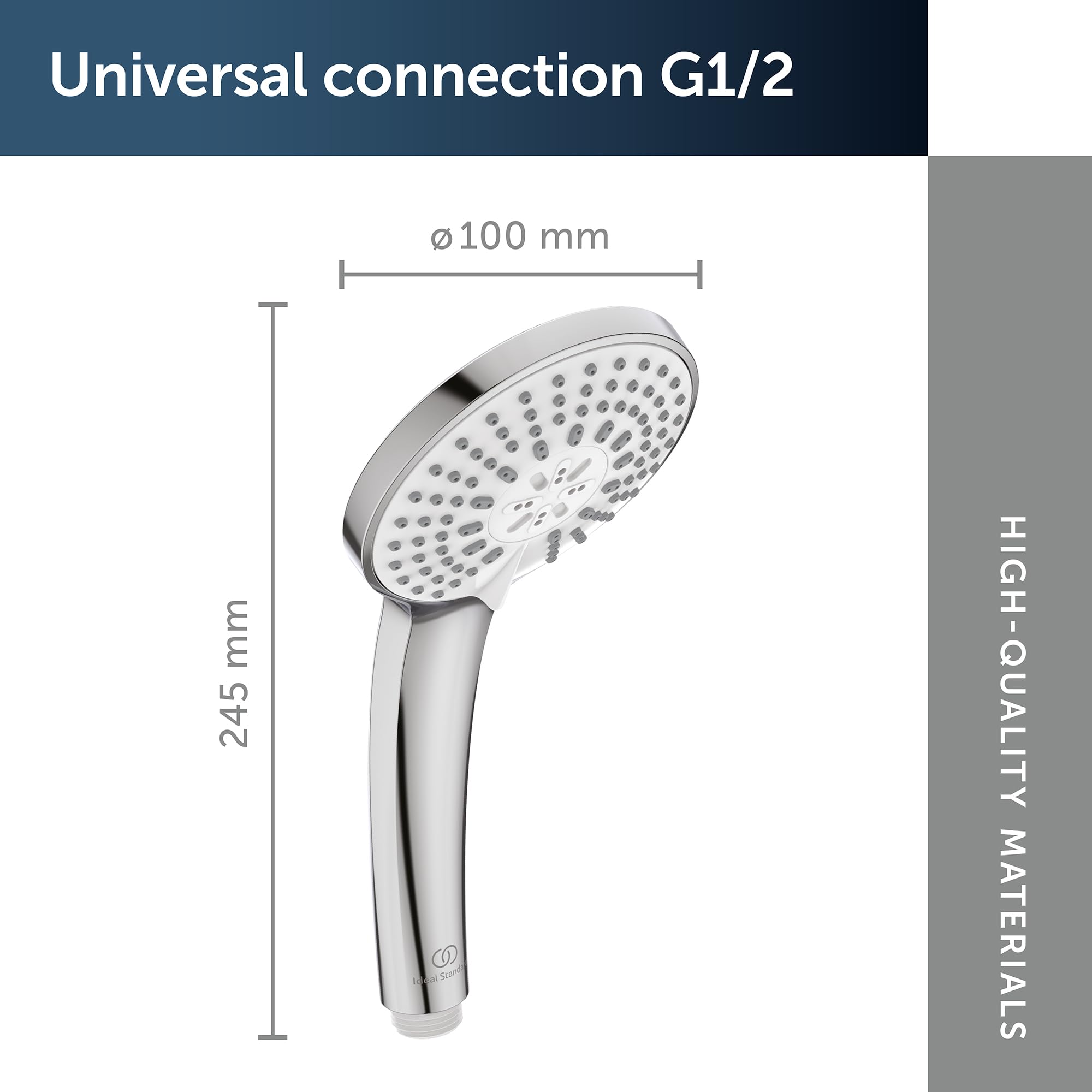 B9417 Idealrain Ensemble barre de douche 900 mm | b Douchette B9403AA Idealrain diamètre 10 cm Ideal Standard, douchette largeur 10 cm double coque avec réducteur de débit 8L/min sous 3 bars, 3 fonctions avec jet... Hansgrohe Pommeau De Douche Ideal Standard Idealrain - Douchette à Main M3 10 Cm, 3 Jets, Chrome B9403AA | /fr Douchette 3 Jets La douchette 3 jets Idealrain B9403AA conçue par Ideal Standard est en plastique chromé double coque, robuste et légère. Elle s'utilise par toute la famille grâce à sa double coque qui maintient le corps de la douchette tiède même si l'eau est chaude. La douchette Idealrain B9403AA conçue par Ideal Standard est en plastique chromé double coque, robuste et légère. D'un diamètre de 10 cm, elle procure un... Elle est écologique et économique : équipée d'un réducteur de débit à 8l/min sans perte de pression, elle permet de réaliser des économies d'eau chaque jour tout en profitant d'une douche revigorante. Elle est universelle et s'adaptera à tout système de douche grâce à ses dimensions pratique : 24,5cm de hauteur pour 3,6 cm d'épaisseur. picots en silicone</li> , </ul> La douchette 3 jets double coque Idealrain est un produit de qualité Ideal Standard fabriqué en Europe, garanti 5 ans constructeur., <ul>