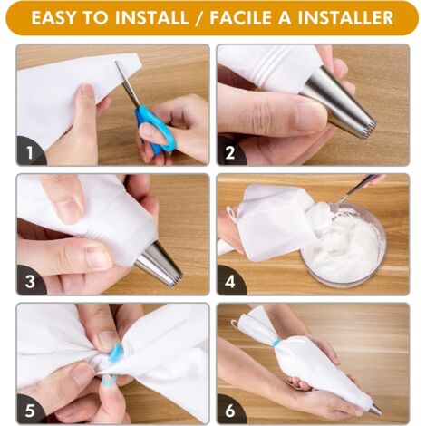 Set de poches à douille ou presse à biscuits Kit de démarrage de qualité supérieure : 7 grandes douilles à douille, 2 grands sacs en coton (30 cm, 35 cm) avec revêtement intérieur supplémentaire, 2 adaptateurs, 2 brosses de nettoyage, 2 pinces à douille pour tous les types de décorations de pâtisserie Poches à Douille Lave-vaisselle Brosse Incluse Lot De Poche à Douille Patisserie Professionnelle, 2 Pièces Poche A Douille Reutilisable 40cm Et 8 Douilles En Inox, Grande Poche A Douille Patisserie Coton Pour Deco Gateau, Biscuits, Cupcake Douilles Acier Inoxydable Décorer Gâteaux Spécifications: Matériau : acier inoxydable 304., Couleur : argenté. Longue durée de vie : sac à passepoil en coton imperméable de haute qualité, stable, durable, buse en acier inoxydable 304 de haute qualité, antirouille, réutilisable, sans odeur et non toxique, professionnelle, durable, longue durée de vie. Lot De 100 Poches À Douille Professionnelles Jetables - Toute l'offre... Dimensions (L x l x épaisseur) : environ 40 x 23 cm. Créativité sans limites : avec nos 8 douilles polyvalentes, vous pouvez laisser libre cours à votre créativité et décorer et remplir de manière créative les gâteaux, muffins, biscuits et autres pâtisseries comme Berliner et pâtisseries. Idéales pour Noël, Pâques, anniversaires, fête des mères ou simplement pour faire plaisir à quelqu'un. Un cadeau du cœur : surprenez vos proches avec un cadeau qui éveille la passion de la pâtisserie.