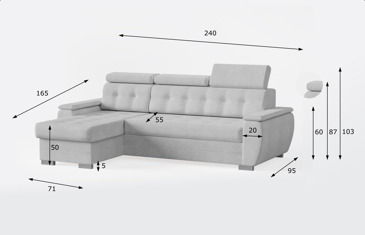 Canapé Avec Appuie-têtes Réglables Robin Inspire Canapé D'angle Convertible En Forme De L Universel Gauche Ou Droite Canapé Lit Avec Espace De Rangement En Tissu Easy Clean 240 X 165 X 87 Cm Crémeux Tosaro Canapé L Gauche Ou Droite Sa forme en L optimise l'espace dans n'importe quel coin de la pièce. Grâce à la fonction de couchage, le canapé-lit se transforme facilement en un lit confortable, ce qui est particulièrement pratique pour les invités de nuit Robin Inspire York Canapé d'angle avec Fonction de Couchage, 2 Petits Trois appuie-têtes réglables offrent un confort optimal. Robin Inspire Canapé ALDO D'Angle Avec Fonction De Couchage Coffre De Lit En Forme De L... Profite d'une relaxation sur-mesure et d'un soutien parfait pour des instants de détente absolue. Choisis librement le côté droit ou gauche pour l’adapter parfaitement à ton salon. Même les taches les plus tenaces se nettoient facilement, sans produits chimiques. Le canapé d'angle en forme de L avec fonction de couchage te propose un espace de détente confortable, transformable en lit, ainsi qu’un espace de rangement supplémentaire.
