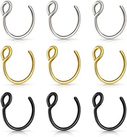 Bijou Lot De 6 Piercings Droits En Acier Inoxydable Anodisé Avec Boule Pour Faux Piercing Sans Perçage Faux Piercings Nez JeiibrZui - Lot De 8, Acier Inoxydable 8mm Au quotidien - Découvrez notre offre Lot de 8 faux piercings en acier inoxydable pour le nez,lèvre, le nez, le septum, réglable, pour homme et femme, Multicolore BANANE Matériau : acier inoxydable., Poids : 6 g. Taille du produit : diamètre 1,2 cm, épaisseur : 0,8 cm Contenu de la livraison : le paquet contient 8 faux anneaux de nez avec 4 styles différents au choix, quantité suffisante pour répondre à votre utilisation quotidienne et à vos besoins de remplacement, de sorte que vous pouvez changer votre apparence sans avoir à obtenir un véritable piercing Nom du produit : faux piercing Couleur : argenté. Ajustement réglable : ces faux piercings de nostril ont un design extensible qui peut être ajusté à votre nez, votre bouche et vos oreilles, ce qui les rend faciles à mettre et à enlever. Montrez votre individualité : ces faux piercings de nez sont parfaits pour les jeunes qui veulent montrer leur personnalité et leur attitude. Porter ces anneaux de nez peut vous aider à vous démarquer et à montrer votre style unique Pour les amateurs de piercings audacieux et originaux, les faux piercings pour le septum devraient vous plaire. Avec notre sélection de bijoux à clip et magnétique, vous pourrez changer de bijoux à volonté sans la contrainte d’un piercing permanent