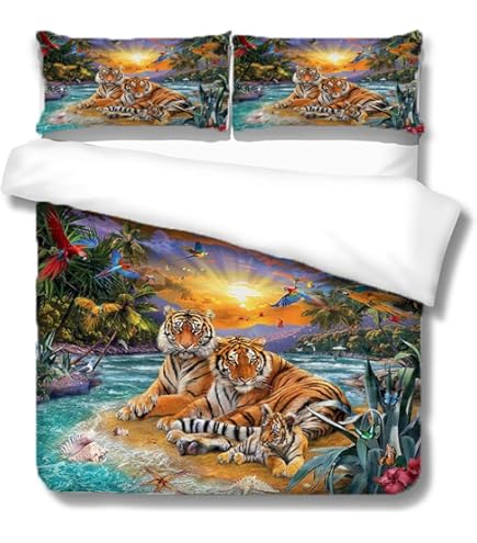 Parure De Lit Motif Tigré Bleu Blanc Dyjuaa Parure De Lit 200x200 Cm 3 Pièces Motif Floral Tigré Ensemble Housse + Taies D'oreiller 65x65 Ensemble housse de couette tigre blanc ensemble de literie Housse de Couette Harry Potter Parure de Lit 200x200 cm en Microfibre... Peut être utilisé dans les chambres, les chambres d'amis, les dortoirs, etc. 【Colis inclut】 1 x housse de couette 90 x 190 cm et 2 x taies d'oreiller 65 x 65 cm 1 x housse de couette 140 x 200 cm et 2 x taies d'oreiller 65 x 65 cm 1 x housse de couette 160 x 200 cm et 2 x taies d'oreiller 65 x 65 cm 1 x housse de couette 200 x 200 cm et 2 x taies d'oreiller 65 x 65 cm 1 x housse de couette 220 x 240 cm et 2 x taies d'oreiller 65 x 65 cm 1 x housse de couette 240 x 260 cm et 2 x taies d'oreiller 65 x 65 cm (Veuillez noter - nos ensembles de housses de couette ne comprennent pas de rembourrage ni de draps) 【Avis】 1., Ne pas blanchir ni exposer au soleil, laver à la bonne température 2., Les couleurs peuvent varier légèrement en raison des différents angles de prise de vue 【Parure de Lit Taille】Comprend une 1 x housse de couette 200x200 cm avec fermeture à glissière, 2 x taie d'oreiller 65x65 cm avec fermeture à glissière (remarque - couettes et oreillers non inclus) Grâce à son design de ceinture angulaire, la couette reste bien en place sans glisser, assurant un maintien fixe de votre parure de lit., 3., Cette housse de couette utilise principalement la technologie d'impression numérique 3D, les détails sont vifs, la solidité des couleurs est bonne et il n'est pas facile de s'estomper, ce qui rend le motif plus clair et la couleur plus lumineuse., 4., Personnes applicables - garçons, filles, hommes, femmes, adolescents. 【Fermeture Éclair et 4 Bandes d'angle】Cette housse de couette et cette taie d'oreiller sont fermées avec une fermeture éclair, faciles à installer et à enlever pour le nettoyage, equipé de 4 attaches dans la housse de couette à l’intérieur, qui peuvent stabiliser la couette en place et l'empêchent de bouger 【Dessin de mode】Cet ensemble de literie décorative rendra votre chambre à coucher élégante, luxueuse, chic et vibrante, et s'accordera parfaitement avec n'importe quelle décoration d'intérieur! 【Facile d'entretien】Lavage en machine à froid, cycle délicat, ne pas utiliser d'eau de javel, séchage au sèche-linge à basse température et repassage à basse température Housse de couette 200x200 cm Parure de couette 200x200 cm Parure de lit...