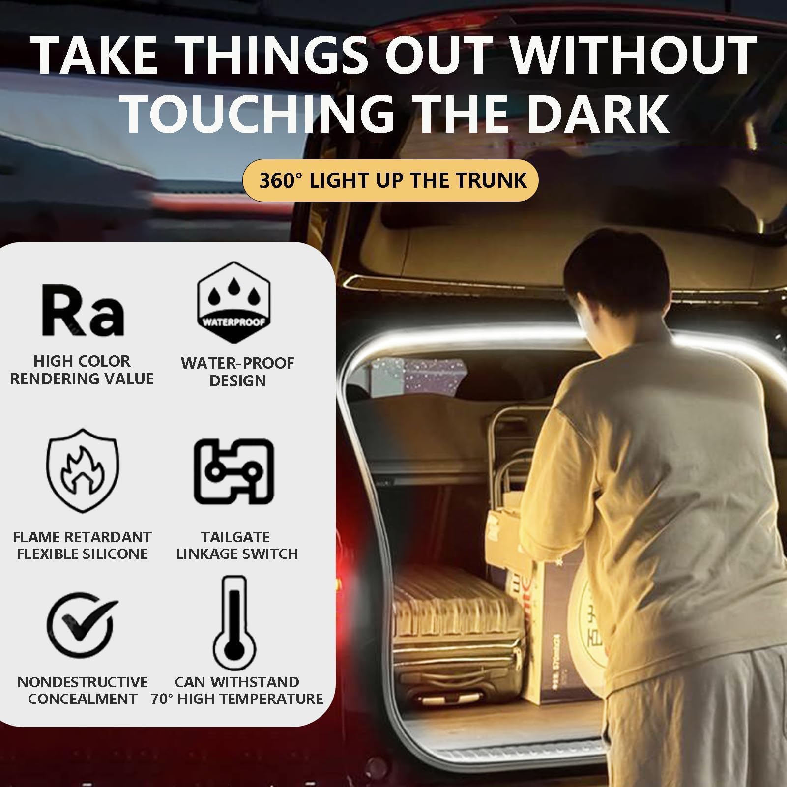 Ruban LED 4 M étanche Dynamic Flowing Car Trunk Light Strip,Ceinture Lumineuse LED Installation Sans Perçage Adhésif Dynamic Flowing Car Trunk Light Strip,Trunk LED Light Strip,Bande Lumineuse LED pour Capot De Voiture,Super Brillant Dynamique Feux Diurnes, Barre Lumière Décorative Extérieur Étanche (Rose, 4M Universel pour tous les véhicules : convient aux berlines, SUV, breaks, pick-ups et coffres de véhicules électriques. La bande LED pour coffre (4 m de long... Montage rapide et sans outil : il suffit de le fixer le long de la ligne souhaitée grâce à un ruban adhésif transparent puissant, de connecter les connecteurs et c'est prêt. Pas de perçage ou de câblage nécessaire. Idéal pour les bandes lumineuses de coffre. Barre lumineuse pour coffre Marche/arrêt automatique : le capteur automatique intégré allume la lumière lorsque vous ouvrez le coffre et s'éteint lorsque vous le fermez. Robuste et résistant aux intempéries : protection IP65 et silicone résistant à la chaleur. Éclairage fiable par tous les temps et climats. Boucle ceinture lumineuse à leds - Matrice 7 x 21 pts sur grossiste...