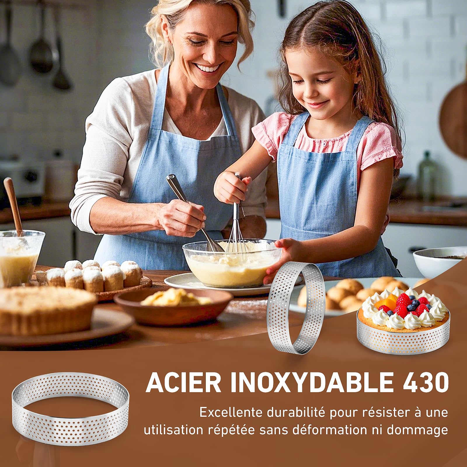 La surface du moule à tartelettes est ultra-lisse, ce qui facilite grandement le démoulage. Tiau 12 Pcs Cercle à Anneau à de Pâtisserie, Anneau à Gâteau oule... Que vous souhaitiez concocter des mini-gâteaux, des mini-pizzas, des gaufres ou d'autres gourmandises originales, ces cercles sont faits pour vous. Ainsi, le fond de tarte obtient une texture plus croustillante et une cuisson plus uniforme, offrant une base impeccable pour une grande variété de desserts à base de tartelettes. Cercles à Tarte Perforés Inox EASYKEENECOM 6 Pièces 8 Cm Cercle à Pâtisserie, Cercle à Tarte Perforé En 430 Acier Inoxydable, Moule à Tartes Pâtisseries Mini Gâteaux Mini Pizzas Muffins Cercles Pâtisserie Perforés Pour Cuisson Uniforme Ils ouvrent un monde de possibilités pour la création de desserts innovants. 【Conception innovante de l'évacuation pour une cuisson parfaite】Nos moules à tartelettes sont ingénieusement conçus avec des trous d'aération régulièrement espacés. 【Applications polyvalentes pour la créativité culinaire】Ces cercles à dessert ne se limitent pas aux tartes aux fruits et pâtisseries traditionnelles. 【Dimensions précises】Les cercles à crumpets sont disponibles en deux diamètres précis : 6 cm et 8 cm. Ainsi, les boulangers amateurs comme les pâtissiers professionnels peuvent réaliser des présentations de desserts impeccables à chaque fois. Ils permettent à l'air emprisonné dans le fond de tarte de s'échapper en douceur, empêchant ainsi le gonflement du fond. 【Construction en acier inoxydable 430 de qualité supérieure】Les moules à tartelettes sont fabriqués en acier inoxydable 430 de qualité supérieure. Excellente Qualité: En acier inoxydable 430 de haute qualité pour le contact direct avec les aliments. Lanneau à dessert 8cm est inodore, inoxydable et résistant à corrosion, convient aux températures élevées jusquà 180°, résiste aux sollicitations Ces minuscules trous jouent un rôle crucial pendant la cuisson. 【Efficacité de cuisson améliorée pour la production de masse】 Nos cercles à pâtisserie révolutionnent l'efficacité. Cercle à tarte perforé cannelé - forte épaisseur - 16 cm - Mallard Ferrière - Meilleur du Chef