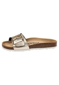 Mules Design Métallique Palado Mules Malta EGS Mates Pour Femme - Sandales Avec Semelle En Mules Femme été Les sandales à plateforme « Palado Inarona » de la collection exclusive Palado by Sila Sahin allient légèreté estivale et charme glamour Palado MALTA EGS - Mules - silber/argenté Semelle souple pour plus de confort : la semelle intérieure souple et confortable offre un amorti optimal et assure une sensation de course détendue - idéale pour les loisirs, le bureau et les longues promenades. Matériau extérieur tendance : les mules Malte EGS Artemisa combinent un matériau facile d'entretien avec un motif métallique qui ajoute une touche élégante à n... Semelle intérieure en daim : la semelle intérieure élégante en daim souple épouse agréablement le pied et soutient un climat sain pour les pieds, même pendant les longues journées. La semelle EVA offre également un maintien optimal, peu importe où vous allez. Fabriquées en Espagne : fabriquées avec soin et précision en Espagne - Fabrication de qualité supérieure pour les femmes qui accordent une importance particulière au style et au confort. Découvrez la Palado Malta EGS Artemisa : qualité, confort et design moderne combinés dans une seule chaussure.