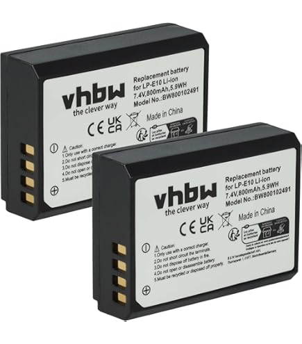 NEEWER Juego de 2 Pilas de Repuesto para Canon EOS 1100D, 1200D, 1300D Remplace modèles d'origine suivante:LP-E10, LP-E10 , Tension: 7., 4V , Téchnologie: Li-ion , Couleur: Noir , Capacité: 1100mAh Batterie Lp-e10 SPANN - Batería De Repuesto Para Canon DS126291, DS126491, DS126621, EOS 1100D, EOS 1200D, EOS 1300D, EOS 4000D, EOS KISS X50, Número De Pieza: LP-E10 7.4V Canon Eos 4000d Akku laitteelle Canon EOS 1100D ym. - Osta täältä - Tekniikkaosat.fi TECHTEK Batterie 1100mAh compatible avec [Canon] DS126291, DS126491, DS126621, EOS 1100D, EOS 1200D, 1300D, 4000D, KISS X50, Kiss X70, Kiss X90, Rebel 1300D...