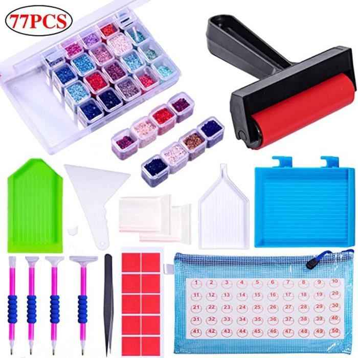 Plateaux Stylos Colle Diamond Painting KIT D'OUTILS ET D'Accessoires De Peinture D'Art De Diamant 5D, Accessoires 8313 EUR Boite Diamond Painting Rangement Outils et accessoires pour le diamant painting Les 120 étiquettes vous aident à organiser et à trouver vos diamants avec un code couleur beaucoup plus facilement. 3 plateaux avec cire antidérapante sont... Grâce à la broderie diamant, créez des œuvres précises tout en profitant d’un moment de détente créative Ensemble D’Outils Polyvalent :Le kit diamond painting inclut 1 grand plateau à diamants et 2 petits plateaux, des stylos de pose 3/6/9 diamants, 5 gommes adhésives, une boîte à flacons, un grand coffre de rangement et un coffret cadeau vert olive à nœud papillon. Tout est organisé pour faciliter chaque étape de votre broderie diamant Chaque accessoire, dont le set dégradé violet 86PCS avec entonnoir, autocollants ronds colorés, feuilles A6 (30 pièces) et petit couteau violet, est conçu pour offrir une expérience fluide et agréable. Organisation Pratique et Efficace :Avec le rangement pour peinture diamant, chaque accessoire trouve sa place. Cadeau Créatif et Élégant :Présenté dans une belle boîte cadeau vert olive à ruban, ce kit diamond painting adulte constitue un choix apprécié pour toute personne aimant la broderie diamant. Accessoires Bien Pensés :Le kit inclut également un outil presse-diamants, un plateau supplémentaire, un correcteur de peinture diamant, et une lame de précision violette. Plats de rangement pour peinture au diamant avec couvercles, 60 pièces $39.99 Ajouter au panier Kit de scellant pour peinture diamantée 480 ml avec bouchon doseur $19.99 Ajouter au panier Rechargeable Large Magnifying Glass with Light, Adjustable Light Temperature $29.99 Ajouter au panier Loupe avec lumière pour tête $19.99 Ajouter...