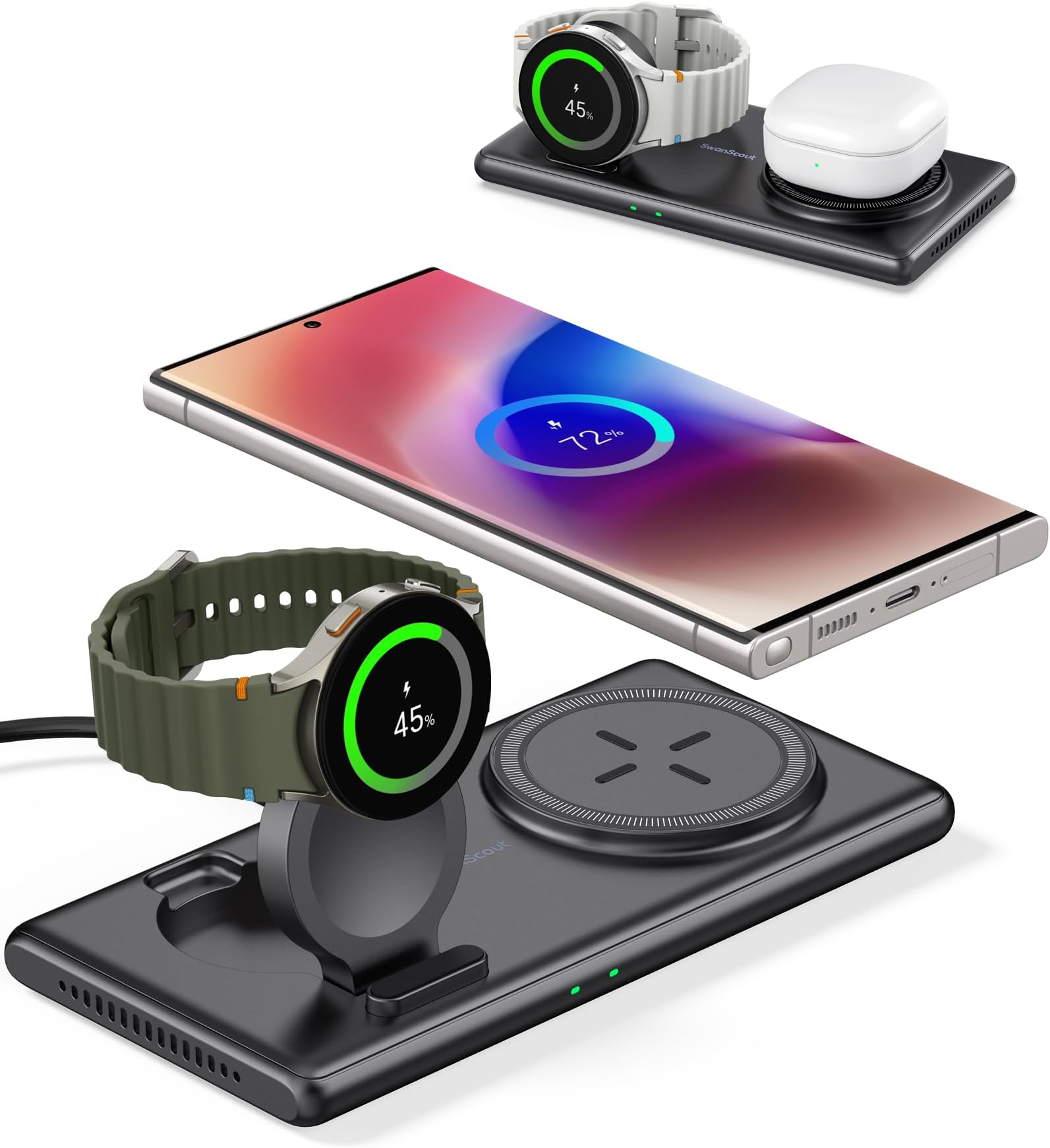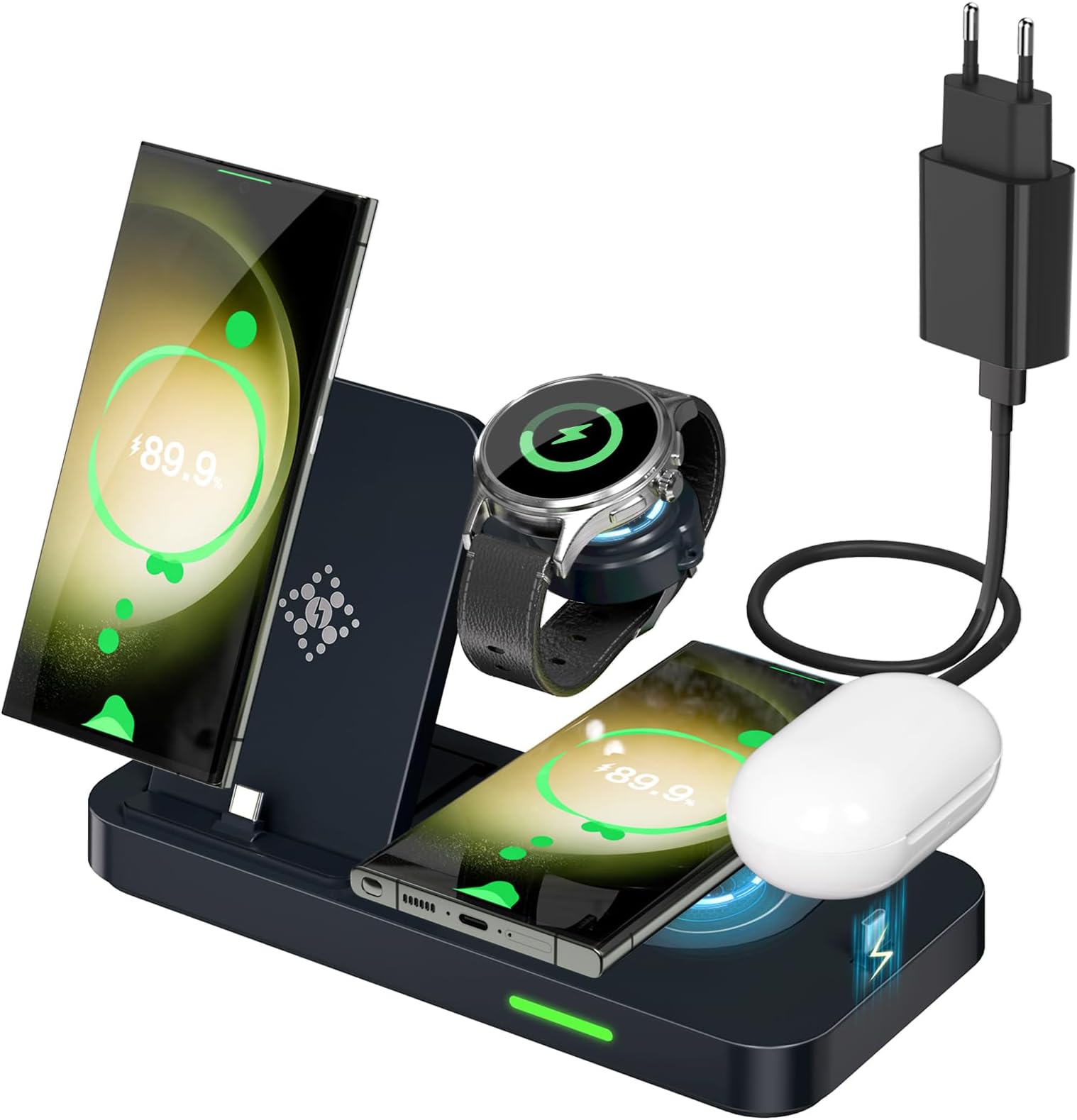 Grâce à la puce intelligente intégrée, la chargeur 3 en 1 assure une protection complète contre les surintensités, surchauffes et courts-circuits, garantissant un rechargement sûr. Le pack inclut un câble USB-C de 1 m, des indicateurs lumineux pratiques (rouge en veille et bleu en charge) et un design ABS écologique et durable, combinant sécurité, esthétisme et fonctionnalité. Une solution tout-en-un pratique pour centraliser vos appareils et gagner du temps., 2., Station de charge pliable et portable – Conçue en silicone durable, cette station 3 en 1 est légère et réglable de 0° à 90° pour charger votre Montres Intelligentes à l’angle optimal. Le design pliable et portable permet d’ajuster la station de 0° à 90°, pour positionner votre Montres Intelligentes à l’angle optimal pendant la charge. Chargeur Induction 3 en 1 pour iPhone 15 Pro ax/15 Pro/15 Plus/15/14 La technologie MagS offre une charge rapide et stable pour votre Smartphones compatible jusqu’à 15W, tout en assurant un rechargement simultané de vos Casques Bluetooth et Montres Intelligentes sans perte de performance. Compatible avec les modèles Smartphones 12/13/14/15/16 Pro Max, Montres Intelligentes Ultra/8/7/6/5/SE et Casques Bluetooth, il permet de charger simultanément trois appareils sans encombrement de câbles. Chargeur Induction 3 en 1, Station de Charge pour iPhone 16/15/14/13/12... Les trois appareils se chargent simultanément sans perte de performance., 5., Kit complet avec indicateurs lumineux et câble USB-C inclus – La station comprend un câble USB-C de 1 m, un design en ABS écologique et durable, et des voyants LED : rouge en veille et bleu lors de la charge. Optimisez votre espace et simplifiez le rechargement de vos appareils avec ce chargeur induction 3 en 1 Hi-Tech. Ce chargeur induction 3 en 1 est la solution parfaite pour garder vos appareils toujours prêts à l’emploi, tout en réduisant l’encombrement et les câbles., 1., Chargeur induction 3 en 1 pour Smartphones, Montres Intelligentes et Casques Bluetooth – Cette station de charge permet de recharger simultanément votre Smartphone jusqu’à 15W, vos Casques Bluetooth à 5W et votre Montres Intelligentes à 3W. Station De Charge Apple EVARY Chargeur Induction Pour Chargeur Samsung Station De Charge 3 En 1 Chargeur Pliable Portable 15W Chargeur Induction 3-en-1 NILLKIN PowerTrio Elle arrête automatiquement la charge lorsque l’appareil atteint 100 %, assurant un rechargement sûr, stable et efficace pour tous vos appareils., 4., Charge rapide et stable grâce à la technologie MagSa – Ce chargeur induction supporte la charge rapide jusqu’à 15W pour les téléphones compatibles, offrant un rechargement efficace sans compromettre la sécurité.