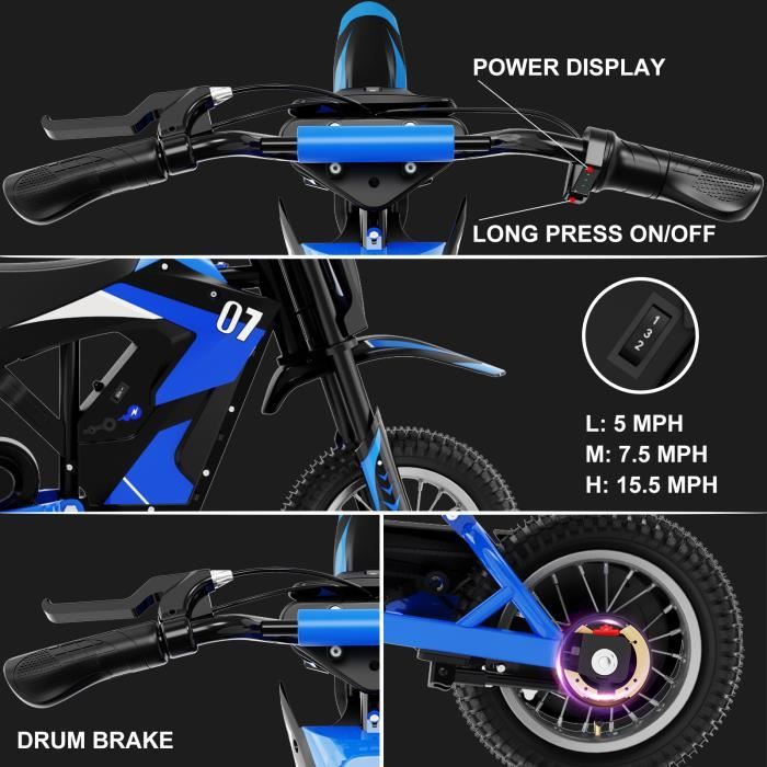 Durée de Vie Fiable de la Batterie pour plus de Plaisir: l'EV07M est alimenté par une batterie de 25,2V 4Ah, 100,Wh et peut parcourir jusqu'à 10km (6,2miles) sur une seule charge, offrant beaucoup de temps pour les aventures en plein air. Caractéristiques de Sécurité Améliorées: Équipé d'un système de freinage à disque efficace et d'un centre de gravité bas, l'EV07M offre plus de stabilité et de contrôle pendant la conduite. Que votre enfant roule sur des surfaces planes ou marche sur de petites collines, cette moto électrique offre des performances douces et puissantes. Le design élégant et moderne, associé à une sélection de couleurs vibrantes, attirera certainement l'attention des garçons et des filles, ce qui en fait un choix de mode que les enfants aiment montrer. EVERCROSS H7 Trottinette Électrique App Disponible, Trottinette Le temps de charge est seulement de 4 à 6 heures, ce qui garantit que le plaisir peut continuer sans attendre longtemps. Haute Performance et Vitesse Sûre: Avec une vitesse maximale de 20km/H (12,4mph), lEVERCROSS EV07M offre une expérience de conduite palpitante et sûre pour les enfants de 3 à 12ans. Moto Électrique-Moto vintage pour Enfants âge de 3-12 ans 2 Mode... REMARQUE : Le produit original ne contient pas de roues de support, veuillez acheter la pièce selon vos besoins. 1 Moteur puissant de 300W 2 Grande autonomie de 15KM Ces caractéristiques sont conçues pour prévenir les accidents et assurer que la moto est facile à manœuvrer pour les jeunes conducteurs. Evercross électrique Enfant EVERCROSS EV07M Moto électrique Pour Enfants De 3 à 12 Ans Pocket Bike Moto électrique Enfants EVERCROSS EV07M | 300W | 20 km/h | Portée de 10... C'est un cadeau idéal pour encourager les enfants à jouer à l'extérieur, les aider à développer leurs habiletés motrices et leur donner la confiance nécessaire pour explorer différents environnements.