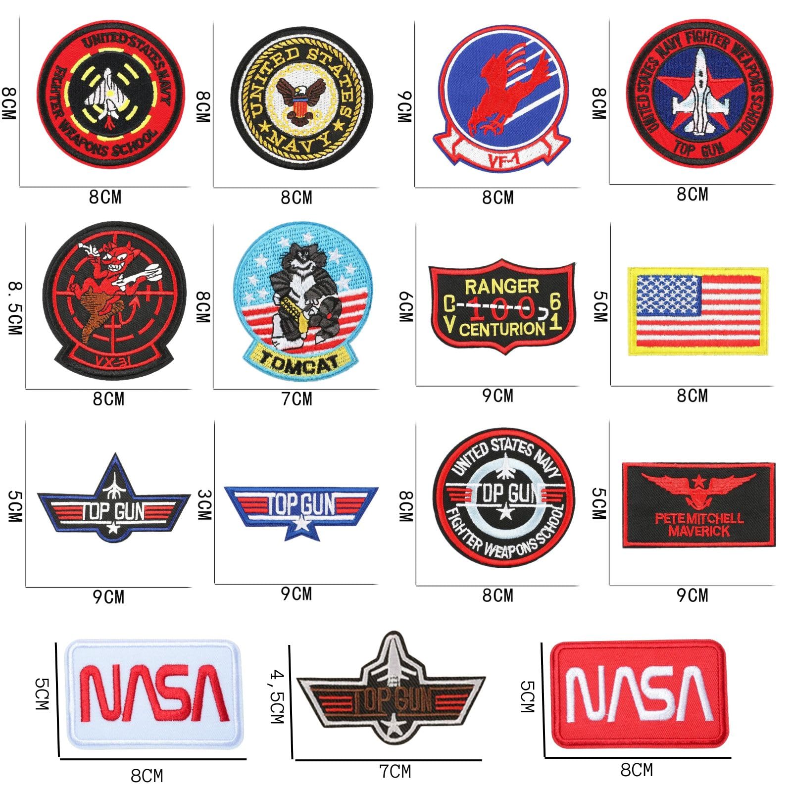 2 PATCH THERMOCOLLANT Brodé Top Gun Tomcat School 9cm EUR 11,90 11 motifs]Patch thermocollant vetement avec 11 motifs différents inspirés de Top Gun, vous pouvez les assortir librement. Les couleurs vives et les motifs exquis rendront vos vêtements et sacs plus personnalisés et attrayants Patch Velcro Ecusson Thermocollant Lot De 11 Écussons Brodés Top Gun Thermocollants - Air Force Navy Army - Pour Veste Jeans Sacs Badges Brodés Militaire Ecusson Personnalisé Conseil chaleureux: En raison de différentes méthodes de mesure de la taille, la différence entre les différents écrans, finalement selon l'objet physique que vous recevez Nom du produit: Patch de repassage , Matériel: Polyester , Couleur: Noir , Poids: 100g Facile à Utiliser: Il suffit de coller le patch brodé sur le vêtement et de repasser le devant et le revers avec une pression sur le fer pendant environ 20 à 30 secondes. JAONLD 11 Pièces Top Gun Ecusson a Coudre, Patch Thermocollant Enfant, Patch Brodé Air Force Marine Corps Armée Veste Tactique Militaire Logo Applique... Matériel de haute qualité: Nos patchs de repassage sont 100% broderie 3D, confortable et ne vous fera pas mal à la main, les couleurs vives du patch vous feront ressortir, patch de broderie méticuleuse de haute qualité, plus durable et facile à laver Polyvalent: Les patchs de repassage sont parfaits pour la décoration de t - shirts, sweat - shirts, hoodies, robes, chapeaux, sacs, vestes, sacs à dos, jeans, gilets, chapeaux, cosplay, activités de plein air ou fans tactiques Il est également possible de choisir une méthode de couture plus robuste Remarque: Le renfort genoux enfant ne peut pas être collé sur un matériau imperméable à l'eau, un matériau plastique ou une boîte rigide, vérifiez qu'il est ferme après le repassage et attendez qu'il soit refroidi pour une utilisation plus longue Patchs Lavables: 11 styles différents vous donnent la liberté de changer les patchs comme vous le souhaitez, chaque ecusson a coudre peut être lavé à 40 ° c ou moins, lavable en machine et sèche - linge