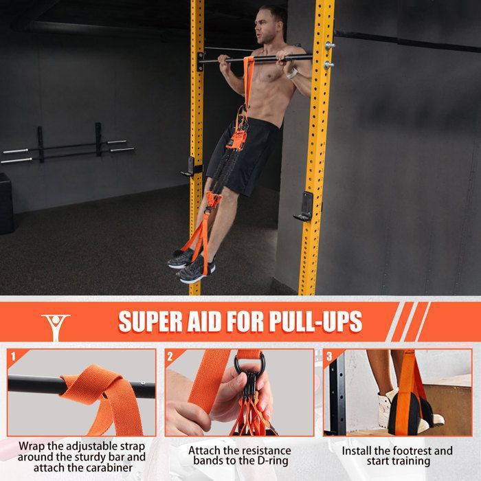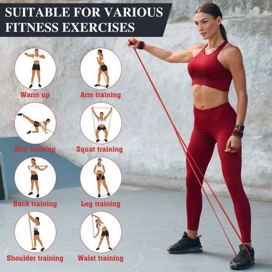 POLYVALENT ET EFFICACE Utilisez ces bandes de résistance pour bien plus que des tractions. Nos bandes d'assistance vous permettent de progresser et de réaliser des tractions sans aide. Elles deviennent un indispensable pour vos séances d'exercice quotidiennes. Usage maison et extérieur : un set compact et mobile pour s'entraîner sur une barre de traction au parc, à la maison ou en salle. PROIRON Bandes Élastique de Résistance - Bande Elastique Fitness Idéales également pour les étirements et l’échauffement. Athlètes avancés : perfectionnez votre technique ou augmentez l'intensité avec des tractions lestées. Bande de résistance - hei13 - Longue bande de traction - Caoutchouc... Les protections supplémentaires prolongent la durée de vie des tubes en latex et assurent une sécurité optimale pendant votre entraînement. UN ENSEMBLE COMPLET POUR VOTRE RÉUSSITE Notre set de bandes de résistance contient tout le nécessaire pour bien commencer : une sangle réglable et robuste avec boucle de sécurité, et quatre élastiques de musculation. Renforcement Du Haut Du Corps Et Du Tronc: Les tractions sollicitent plusieurs groupes musculaires. Renforcement Dos Bras ,bande De Résistance élastique Pour L'entraînement Elastique Musculation Bande élastique verte pour la musculation | Résistance 22 à 55 Kg Sûres, Durables Et FiabLES: Chaque bande de résistance est équipée d'anneaux en d robustes pour une connexion sécurisée.