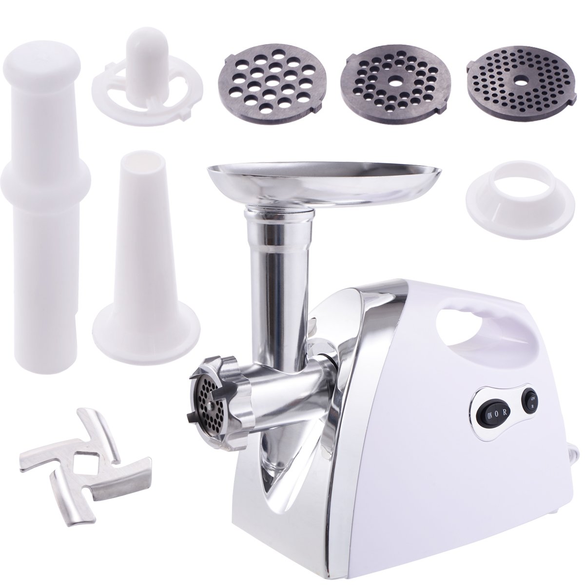 Pour Saucisses Boulettes Brandt HAC1200BG - Hachoir A Viande Electrique - 1200W - 3 Disques En Acier Inoxydable - 2Kg/min Hachoir Inox Multifonction Hachoir à viande, 1200W, 3 types de lames et accessoires pour Mxzzand broyeur d'aliments avec lames de tambour Hachoir à légumes... Hache jusqu’à 2 kg de viande par minute sans encrassement. Multifonction 5 en 1,Viande, légumes, tomates, saucisses un seul appareil pour tout faire. Une ventilation suffisante est indispensable pendant le fonctionnement. Couleur : Blanc Dimensions du produit : 17., 5 x 22 x 32., 2 cm Tension (V) : AC220-240V Poids : 2,65kg Usages spécifiques pour le produit : Couper les Fruits, Hacher la Viande, Couper les Légumes, Fabriquer des Saucisses Durable et sûr : Acier inoxydable robuste de qualité alimentaire, protection contre la surchauffe et double sécurité intégrée. Facile à nettoyer,pièces amovibles pour un lavage à la main. Kit complet : Comprend un hachoir à viande, une lame transversale de 1,5 cm, 3 cabestans (grossier), 3 cabestans (fin), des connecteurs métalliques, des vis de transport, un plateau en plastique et une tige de poussée. Ce hachoir vous permettra de hacher jusqu'à 2kg de viande par minute et en trois tailles différentes grâce à ses disques en acier inoxydable de petite (3mm), moyenne (5mm) et grande (7mm) taille