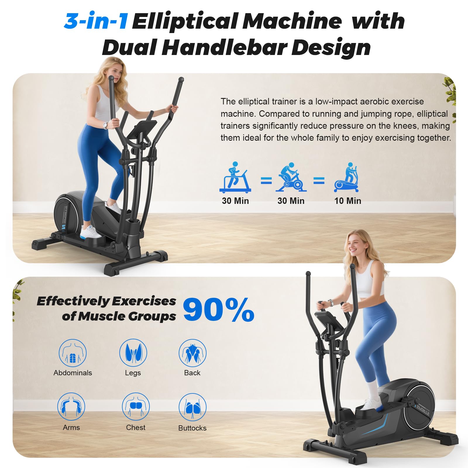 Le grand accoudoir à l'extérieur est utilisé pour l'exercice complet du corps, tandis que le petit accoudoir à l'intérieur permet de se concentrer davantage sur l'entraînement des membres inférieurs. Vous ne dérangerez pas votre famille et vos voisins lorsque vous vous entraînerez tard le soir ou que vous vous réveillerez tôt le matin. 16 Niveaux Résistance Magnétique Neezee Vélo Elliptique, Velo Elliptique Ultra Silencieux Pour Vélo Elliptique Maison 16 Niveaux Résistance Grâce à ses 16 niveaux de résistance, son volant d’inertie de 8 kg et sa foulée de 42 cm, ce vélo elliptique ultra-silencieux s’adapte à tous les niveaux d’entraînement. Conçu pour un confort optimal, il supporte un poids maximal de 150 kg et est équipé d’un écran LCD ainsi que de capteurs de pouls pour suivre vos... 【Compatible avec les Applications & Entraînement Scientifique】 L'écran LCD multifonction affiche en temps réel les données essentielles telles que le temps, la distance, les calories, la fréquence cardiaque, le niveau de résistance, etc. Neezee Vélo Elliptique, Velo Elliptique Ultra Silencieux pour Usage Domestique avec 16 Niveaux de Résistance,Volant d'inertie de 8kg,Foulée de 42cm, Poids Maximal de 150kg,écran LCD,Capteurs de Pouls 【Silencieux et Fluide】 Le volant d'inertie de 8 kg de qualité professionnelle et le système de résistance qui a été débogué des milliers de fois offrent une forte résistance, rendant chaque pas fluide et régulier sans secousses. Neezee dispose d'une équipe de R&D et d'un service après-vente professionnels. Que ce soit pour brûler des graisses ou renforcer votre corps, vous trouverez un programme d'entraînement qui vous convient. Cet excellent vélo elliptique a été créé à partir des données d'une enquête menée auprès de plus de 5 000 amateurs de fitness et entraîneurs professionnels. En tant qu'exercice aérobique complet du corps, le vélo elliptique permet de faire travailler plus de 90 % des groupes musculaires du corps. 【16 Niveaux de Résistance Magnétique Réglable】 Ce vélo elliptique est équipé d'un volant d'inertie magnétique robuste de 8 kg, prend en charge le passage flexible entre 16 niveaux de résistance et offre une forte résistance conforme aux normes des salles de sport. Vous cherchez à améliorer votre condition physique depuis le confort de votre domicile, sans subir les désagréments du bruit ou d'une machine peu flexible. Le vélo elliptique Neezee avec son application Bluetooth vous offre 16 niveaux de résistance ajustables pour un entraînement personnalisé 【Conception à Double Poignée et Entraînement Complet du Corps】 Le vélo elliptique adopte une conception à double poignée. Vous pouvez brûler des graisses, sculpter votre corps et entraîner votre condition physique à la maison sans vous soucier de la météo. Sa conception ergonomique réduit les blessures sportives grâce au principe de la force, et les débutants comme les vétérans peuvent s'entraîner en toute confiance., (Poids max., 150 kg) Test du vélo elliptique Neezee : entraînement complet à domicile