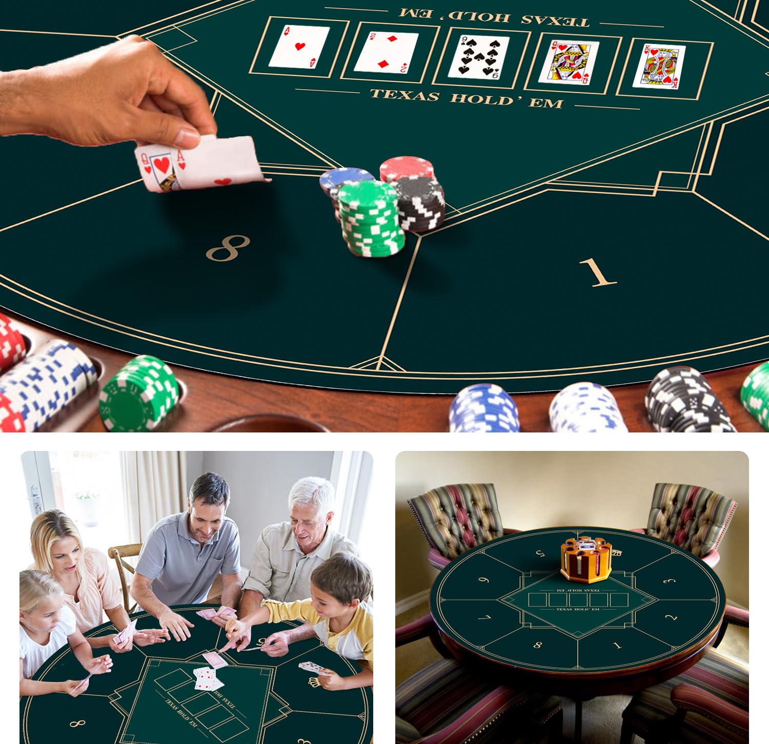 Le tapis de table de jeu a un toucher doux et peut rester en place pendant le jeu. La surface du jeu Les cartes sont avec des motifs élégants imprimé et ajoute une touche d'élégance à votre jeu de cartes. Vous pouvez poser des verres sur le tapis de table et essuyer les déversements avec un gant de toilette. La taille du tapis de table de jeu est de 61 / 90 / 190 / 100 / 100 cm. Tapis De Poker. Classement & Guide D'achat En Sept. 2025 Le tapis de table de jeu de 2 mm d'épaisseur peut être facilement plié et plié et peut être déplié immédiatement pour jouer. Tapis de poker rond multi-personnes : notre tapis de poker rond offre une surface de jeu antidérapante et silencieuse. Rivergen Tapis de Poker 120 x 60 cm Vert paisseur 3 mm Sac de Transport Inclus Tapis Poker Texas... Réduction du bruit : le tapis de poker a une surface douce sur laquelle les cartes glissent mais ne peuvent pas glisser. IDÉAL POUR DIFFÉRENTES SCÈNES, DIFFÉRENTS ÂGES Il s'agit d'un tapis de table en caoutchouc de poker pour une utilisation à la maison ou dans la salle de cartes. Antidérapant : le tapis en caoutchouc durable a un fond antidérapant qui adhère fermement à la table. Tapis De Jeu Rond Caoutchouc Tapis De Poker Texas Hold'Em Pliable Portable 60-80-100 Cm, Rond, Tapis De Poker De Casino Tapis Pour 6-8 Personnes Promo Coussin évasion, Tonnelle Autoportante riviera, Table Extensible margaux Ecloz... Tapis de jeu portable : la housse de table de poker est portable pour jouer en déplacement.