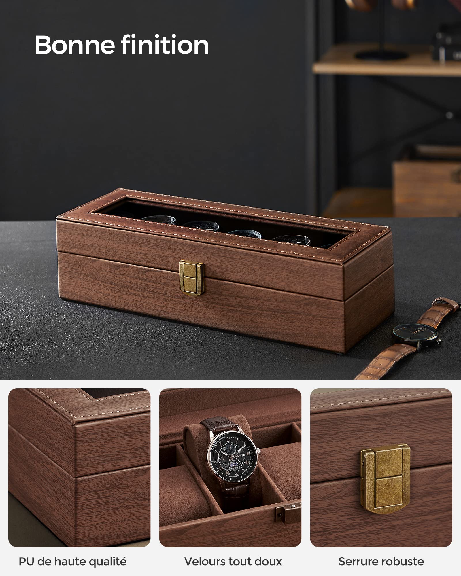 Boîte à montre arrondie en faux cuir noir - 6 montres | En stock! | Warren Asher CES Coffret/Présentoir/Boîte/Boîtier à Montre Bijoux en cuir PU 3... Coffret Montre Similicuir Noir Blanc Boîte Montre Velours Boîte à Montres KoGiio 2 Emplacements - Cuir PU - Coussinets Amovibles - Brun - Voyage Boîtier Velours Coussin Amovible Boite Montre Homme 【Stockage Grande Capacité】 Boîte à montres 6 cases avec rembourrage anti-rayures - Chaque compartiment accueille des cadrans jusqu'à 43mm. 【Esthétique Luxe Moderne】 Coffret à montres en similicuir noir/blanc, renforcé de charnières métalliques et coutures blanches. SONGICS Boîte à ontres à 6 Eplaceents, Coffret à ontres, Écrin... Protège contre la poussière tout en offrant un accès rapide à vos boite montre préférées. 【Polyvalence d'Organisation】 Grâce aux coussins amovibles, transformez votre Rangement Montre en étui à bijoux, boutons de manchette ou accessoires. 【Cadeau Haut de Gamme】 Fermeture métallique à ouverture facile, alliant praticité et élégance. Parfait pour usage personnel, vitrine commerciale ou cadeaux (Fête des Pères, Saint-Valentin., ., ., ).