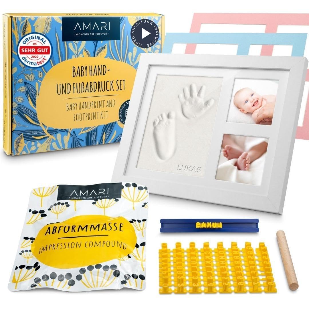 Happy Hands 3D DeLuxe kit d'empreintes pour bébé 2023 - Empreinte de main et empreinte de bébé, cadre photo en bois pour... Kit Naissance Bebe Fille Kit Empreinte Main Et Pied Bébé Kit Empreintes Bébé LATRAT - Cadre Photo Avec Argile Pour Mains Et Pieds - Cadeau Naissance Original Kit Empreinte Bebe Cadre Photo Empreintes Mains Pieds 👶 UN SOUVENIR POUR L’ÉTERNITÉ – Avec notre kit empreinte bébé, créez un souvenir précieux et durable. 👶 CADEAU PARFAIT POUR UNE NAISSANCE – Idéal comme cadeau femme enceinte, pour une baby shower ou l’arrivée d’un nouveau-né. Cadre photo 3D - Clone Stéréo - Kit de Plâtre pour Bébé - Unisexe... Le cadre photo avec moulage attirera tous les regards dans votre intérieur. Une vidéo explicative est incluse. 👶 TOUT INCLUS – En plus du cadre et du plâtre, le kit contient 3 fonds colorés, des lettres et chiffres pour inscrire prénom et date de naissance. Le nettoyage se fait facilement à l’eau tiède.