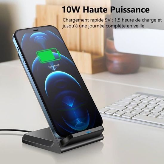 Grâce à la puce intelligente intelligente, le chargeur sans fil protège contre la surchauffe, la surintensité, la surtension et les courts-circuits. 20w Rapide Chargeur à Induction Chronus 2 En 1 Chargeur Sans Fil Pliable Station De Chargeurs Noir Les étuis métalliques magnétiques ou les cartes bloquent le chargeur Qi, il suffit de le placer au milieu pour garantir des performances optimales. Chargeur Induction 15W Qi Phone And Watch Charging Chargeur Sans Fil 3 En 1 15 W Station De Charge Rapide Pour Apple Chargeurs à Induction Pour Téléphones Portables Station Charge Rapide IPhone Samsung Le chargeur Qi (chargeur Qi) prend en charge tous les appareils compatibles Qi : iPhone 12-16, Hua Wei, téléphones Android et plus encore. Les coques métalliques et magnétiques peuvent interférer avec le processus de charge, donc placez-les au milieu. Chargeur à Induction 3 en 1, Chargeur sans Fil 15W Rapide Pliable... Une fois plié, il ne fait que 2 cm de haut, il se déplie pour devenir un support de charge inductif stable - Idéal comme chargeur USB-C pour les déplacements. Protection maximale et finition antidérapante - Technologie de protection intelligente pour éviter la surchauffe, la surintensité, la surtension et les courts-circuits. Chargeur induction sans fil 15 W - noir Design à double bobine pour verticalement et horizontalement : avec deux bobines, cette station de charge sans fil offre une zone de charge optimisée et deux angles de vue. Avec seulement 2 à 3 cm plié, ce chargeur à induction pour téléphone portable est compact et facile à transporter – parfait pour le bureau, la maison ou les déplacements. Le chargeur sans fil dispose d'un coussinet en silicone antidérapant et de quatre pieds stabilisants pour un maintien sûr sur le verre, le bois ou le métal. Deux bobines intégrées permettent une charge verticale ou horizontale, idéale pour le streaming vidéo ou les appels FaceTime pendant le chargement. Compact, pliable et mobile : le support de chargeur sans fil pliable de 15 W est parfait pour les voyages et le bureau.