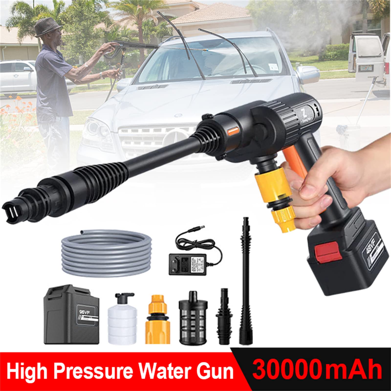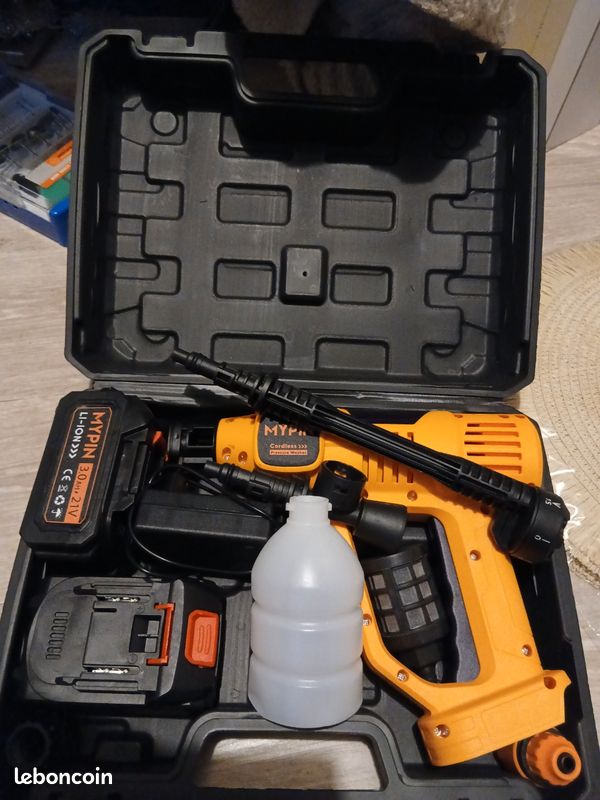 Nettoyeur Haute Pression sans Fil, 50 Bar Nettoyeur Haute Pression sur Batterie avec 2 x 3,0 Ah 7 niveaux de pression réglables et maximum 660 PSI : ce réservoir d'eau électrique dispose de 7 niveaux de pression réglables pour que les gens puissent régler la pression de l'eau pendant un processus de nettoyage, il peut protéger l'apparence de la voiture et vous permettre d'avoir un meilleur temps de nettoyage. Starlyf High Pressure Nettoyeur Haute Pression Sans Fil, Buse 6 En 1, 30 Bars Pistolet De Lavage Haute Pression Nettoyeur Voiture Batterie Si vous devez nettoyer votre voiture, il suffit de déplier ce réservoir et de remplir d'eau ou de shampooing de voiture dans ce réservoir et de brancher le pistolet de lavage pour nettoyer facilement votre voiture Pression de 600 PSI, portée de 7m, batterie 21V (autonomie 45min). Inclus 6 buses différentes (0° à 40°), un flacon à mousse et un tuyau. Léger et maniable, il... Nettoyeur haute pression sans fil 75 bars - Nettoyeur mobile avec 4... Ce pistolet de lavage peut prendre en charge 25 à 35 minutes de temps de nettoyage lorsque la batterie est complètement chargée pendant 3 à 4 heures. 7 niveaux de pression peuvent répondre à toutes les situations de la voiture. Et peut même arroser le jardin et les plantes. La taille pliée du réservoir d'eau est de 22,9 x 23,5 x 17,9 cm. Vous pouvez insérer 4 roues amovibles dans la base du réservoir et vous aider à retirer le réservoir pendant que vous utilisez le pistolet de lavage, il peut facilement suivre vos mouvements, terminer votre travail rapidement. Kit de nettoyeur haute pression sans fil pliable : le kit de nettoyeur haute pression électrique amélioré contient un réservoir pliable et un lave-auto léger, ce qui est une méthode de nettoyage plus pratique à la maison ou à l'extérieur.