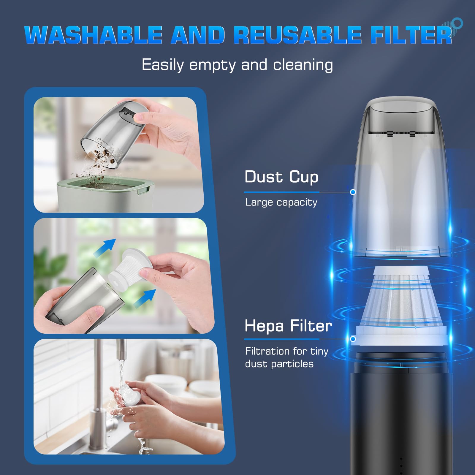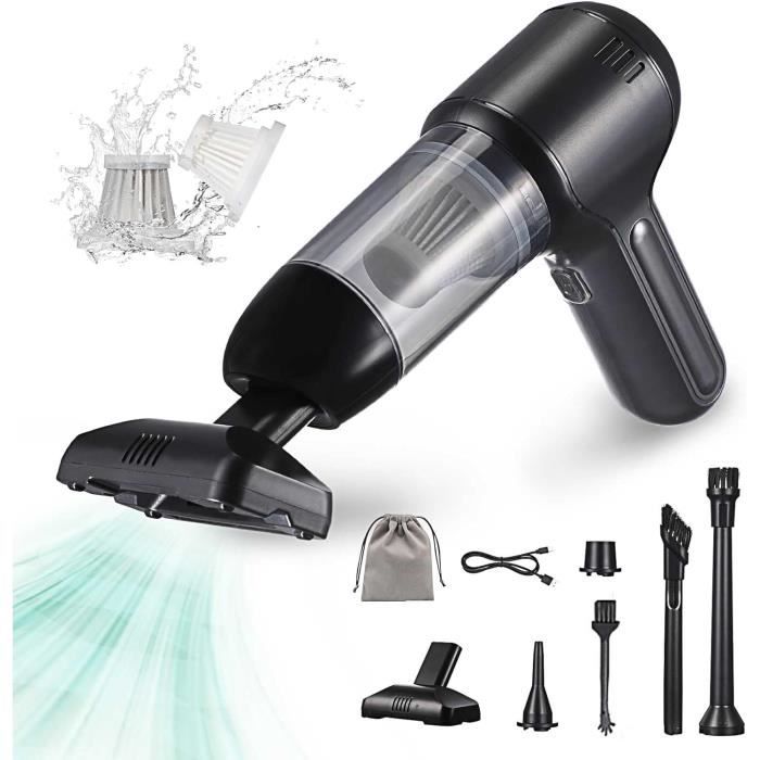 Aspirateur à Main, 13000Pa Mini Aspirateur Voiture sans Fil,Aspirateur 【Cartouche Filtrante Anti-poussière】Le conteneur de collecte de poussière transparent de grande capacité adopte une conception en deux parties, facile à démonter et à installer, facile à nettoyer la poussière ; Cartouche filtrante HEPA intégrée, filtration multiple des plus grandes particules de poussière, ce qui peut efficacement les empêcher de pénétrer dans le compartiment moteur et d'obstruer le moteur ; La cartouche filtrante peut être démontée et lavée, et elle est aussi propre que neuve, et elle peut être réutilisée. Aspirateur Sans Fil 15000pa Aspirateur Voiture 15000PA, Mini Aspirateur Portable 3 En 1 Avec Filtre Hepa Puissant Et Sans Fil Pour Voiture Et Maison 96874401 Mini Aspirateur Main L'aspirateur sans fil rechargeable peut être placé dans la voiture, la maison et d'autres endroits, ne prend pas de place, et l'aspirateur sans fil à main est facile à ranger et à utiliser. Cet aspirateur sans fil est une petite bête : avec une puissance d'aspiration de 15000 Pa, il avale tout sur son passage - poussière, miettes, cheveux... En... Trier par Par défaut Aspirateur à main Preisku Aspirateur de voiture à main sans fil aspirateur sans fil 4 en 1-bleu argenté Les points forts Super puissance d'aspiration de 16000pa, améliore l'efficacité du nettoyage. Léger et portable, un outil essentiel pour les voyages à domicile. Outil multifonction 4 en 1, adapté à plusieurs... La conception sans fils évite le désagrément des fils et il n'est pas nécessaire de changer l'alimentation à tout moment. 【Fonction Intelligente Aspirateur Sans Fil】. Il peut être déplacé à volonté pour vous aider à polir n'importe quel endroit, comme les automobiles, les scrivanie, les chaises et les fauteuils. 【Léger et Flexible】- Le corps profilé est léger et pratique, non lié par des fils, flexible à utiliser et ne fatigue pas vos mains. Il y a trois voyants d'alimentation à l'extrémité de la poignée, l'état de l'alimentation restante est clair en un coup d'œil. 【Forte Puissance d'aspiration, Aspirateur Voiture: 15000 PA】 - La puissance de 60 W a une puissance d'aspiration super forte de 15000 PA, peut pénétrer profondément dans les coins et les fissures, élimine efficacement les acariens, les spores de moisissures, les bactéries, la poussière, les résidus de papier, les cheveux et autres saletés, qu'il s'agisse de poussières tenaces, de graviers, de mégots de cigarettes, de morceaux de fruits, de taches d'eau.