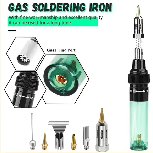 Fini les configurations compliquées ou le temps d'attente. Température réglable Personnalisez la température en fonction de vos besoins spécifiques. Contenu : 1 stylo à souder (gaz non inclus)., 1 pointe de soudage. 1 tête de coupe à chaud Notre fer à souder sans fil 4 en 1 élimine le besoin d'une station de soudage. Confortable et sûr Le fer à souder est doté d'une poignée en alliage d'aluminium qui offre une prise en main confortable et une expérience de soudage sûre. Soudure polyvalente Dites adieu aux stations de soudure. Cette fonction pratique permet de souder avec précision et garantit des résultats optimaux à chaque fois. Vous pouvez travailler en toute confiance, en sachant que votre main est protégée. Équipé d'un stylo à souder et d'une panne de fer à souder 4 en 1, il répond à tous vos besoins en matière de soudure, y compris la soudure à l'étain et la soudure à l'argent. 1, mini chalumeau de cuisson à température réglable, outil de soudage au gaz butane, kit de soudure pour bijoux. 2,5 sur 5 étoiles... Fer A Souder A Gaz Stylo à... Notre fer à souder sans fil 4 en 1 élimine le besoin d'une station de soudure. Il suffit de le remplir avec du gaz et vous êtes prêt à partir. Il suffit de le remplir et d'appuyer sur le bouton ON/OFF pour commencer à l'utiliser. De plus, le support flexible offre un endroit pratique pour tenir le fer à souder lorsqu'il n'est pas utilisé. Plage de température du fer à souder : 250-450°C Fer à souder à gaz - NEDIS - Sans fil - Chalumeau - Flamme - Brasure C'est un outil polyvalent qui devrait faire partie de la boîte à outils de tout amateur de bricolage. Dremel 2000 fers à souder VersaTip - Fer à souder et kit de soudure (avec 7 pointes interchangeables pour soudure, coupe à chaud, soudure, pyrogravure, gravure sur bois, bijoux Capacité de remplissage : 12 ml. Fer à Souder Sans Fil 4 En 1, Mini Chalumeau De Cuisson à Température Réglable, Outil De Soudage Au Gaz Butane, Kit De Soudure à Bijoux Fer à Souder Sans Fil Butane Soudure polyvalente : dites adieu aux tracas des stations de soudure. Dimensions (diamètre x L) : environ 1,9 x 16,7 cm., Poids approximatif : 85 g. Plage de température du fer à souder : 250 à 450 °C. Finis les réglages compliqués et les temps d'attente. Cette fonction pratique permet une soudure précise et garantit des résultats optimaux à chaque fois.