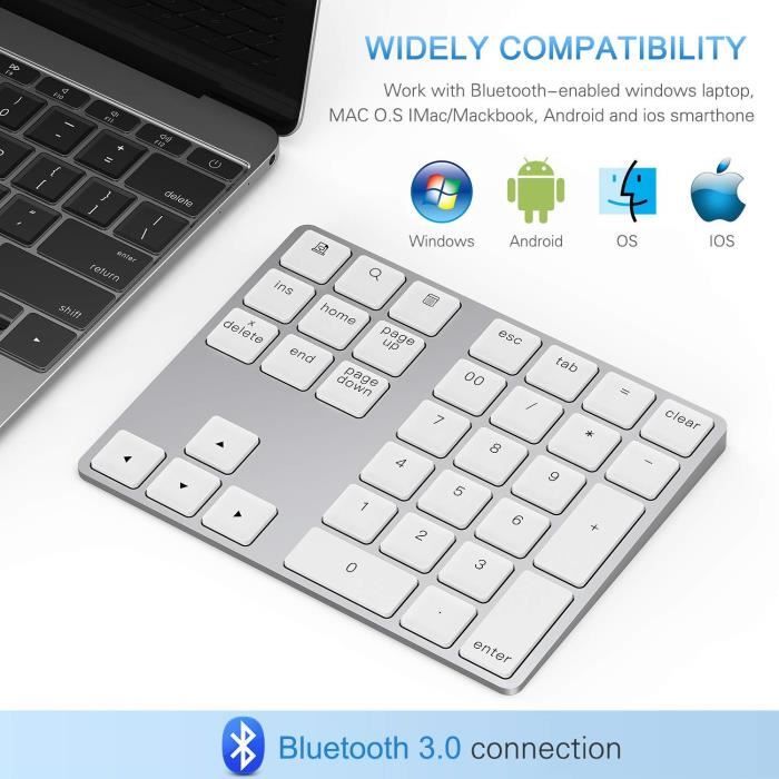Ce clavier numérique sans fil dispose d’un mode de veille automatique, offrant des mois d’autonomie en veille. Fonctionne sur toutes les surfaces : bureaux, etc. Tastierino Numerico Usb Pavé Numérique Sans Fil Bluetooth/2.4G - 34 Touches Avec Calculatrice - Compatible PC, Mac, Ordinateur Portable - Argent 34 Touches Portable Charge USB-C permettant une utilisation continue pendant la charge. Résout le problème de l’absence de pavé numérique sur les ordinateurs portables et les tablettes minces grâce à la simplicité du plug-and-play. Parfait pour les utilisateurs d'ordinateurs portables qui travaillent à plusieurs endroits. Pour les connexions suivantes, activez simplement le Bluetooth et la connexion se fera automatiquement. Compatibilité Universelle avec Numpad: Fonctionne sur les appareils Windows / macOS / iOS / Android - le clavier numérique idéal pour les utilisateurs de MacBook, les joueurs sur PC et les professionnels mobiles. Étudiants et enseignants : Basculez facilement entre les calculs et la prise de notes Clavier numérique rechargeable USB-C Pavé numérique rechargeable USB-C avec autonomie prolongée Ce pavé numérique pour USB C résout les touches numériques manquantes sur les claviers compacts tout en maintenant un espace de travail sans encombrement avec des performances sans fil stables. Conception ergonomique : Touches ciseaux silencieuses + inclinaison ergonomique de 15 ° Connexion stable jusqu'à 10 m. Pavé Numérique Bluetooth 2 En 1 Avec Calculatrice – | FindTheDeal Pavé Numérique Bluetooth Calculatrice Clavier numérique silencieux et ergonomique : Doté de touches d’interrupteur à ciseaux silencieuses et d’une conception inclinable à 15 °, notre pave numerique sans fil réduit le bruit de frappe dans les espaces partagés tout en minimisant la fatigue du poignet. Léger et facile à transporter. 2-en-1 Pavé numérique et calculatrice: Passez instantanément d'un pavé numérique Bluetooth 34 touches (avec raccourcis NumLock/ESC/Delete) à une calculatrice autonome d'un simple geste. Connectez 2 appareils à la fois Le pavé numérique Bluetooth peut être couplé à 2 appareils simultanément (par exemple, un ordinateur portable et une tablette). Joueurs : Pavé numérique programmable pour les raccourcis clavier des MMO, Et plus encore. Connectivité deux appareils : Ce pavé numérique s’associe à deux appareils (ordinateur portable/tablette/téléphone) via Bluetooth 5., 0 dans un rayon de 10 mètre. Pavé numérique portable Format compact (15 x 14,7 cm) compatible avec les housses d'ordinateur portable. Connexion facile via Bluetooth 5., 0 Suivez les étapes ci-dessus pour connecter le pavé numérique Bluetooth à votre appareil pour la première fois. Conception ergonomique à 15° Inclinaison ergonomique à 15° : réduit la fatigue du poignet lors de longues séances Il est livré avec une garantie de 12 mois et une assistance 24 heures sur 24., Il est particulièrement adapté aux comptables qui se déplacent entre les bureaux, aux étudiants travaillant dans les bibliothèques et aux travailleurs à distance nécessitant une saisie numérique fiable en déplacement. Idéales pour les bureaux partagés. Idéal pour les travaux de longue durée et soulage efficacement la fatigue du poignet Connexion rapide à un PC Windows et Chrome OS pour une utilisation immédiate Pavé Numérique sans Fil, Clavier Numérique Bluetooth à 34 Touches Clavier sans Fil avec Cable... Deux modes puissants Appuyez pour basculer instantanément entre le pavé numérique et la calculatrice., Aucun logiciel requis. Connectivité Bluetooth pour i-Pad/tablettes Android Pavé numérique portable et fiable : Conçu pour la portabilité, ce clavier numérique pour macbook se glisse facilement dans n’importe quel sac. Utilisable comme clavier numérique filaire pendant la charge Équipé d’un pavé numérique sans fil bluetooth et d’une calculatrice, cet appareil 2-en-1 est idéal pour les comptables, les étudiants, les programmeurs, les employés de bureau, etc., pour traiter efficacement leurs données et effectuer des calculs