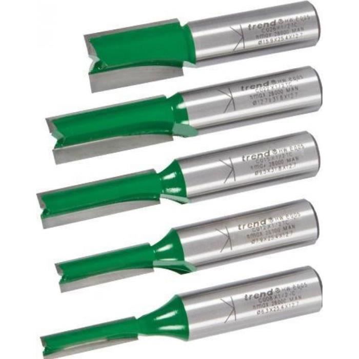 Outil Professionnel Menuiserie Lot De 5 Fraises Rotatives En Acier Au Tungstène Avec Tige De 6 Mm Et Tete De 10 Mm 84685476 Domino Festool Fraise droite à roulement à billes supérieur à 2 cannelures et à pointe Lot de 10 forets à percussion rotatifs en carbure à 2 cannelures pour... Une fraise droite à deux cannelures produisant une finition propre pour les bois abrasifs tels que l’aggloméré, les panneaux de fibres à densité moyenne, le contreplaqué et certains bois durs. 12,7 mm de diamètre x 50,8 mm de profondeur de coupe. L’outil essentiel pour guider des joints formés avec des gabarits de plan de travail avec une épaisseur de jusqu’à 40 mm. Description : La gamme Lumberjack Trade à deux cannelures est conçue pour répondre aux besoins exigeants des artisans professionnels. Coupez des joints précis et propres à chaque fois. Particulièrement adapté pour une utilisation sur des plans de travail stratifiés en aggloméré abrasif. Tige de 1/2 pour une utilisation dans des routeurs plus grands et des applications plus lourdes avec la tige K’mark pour garantir la sécurité des pratiques de travail. Profilé en carbure de tungstène, idéal pour les travaux plongeants sur des matériaux abrasifs avec gabarits pour découpe de plaques de cuisson et d'évier. Revêtement PTFE pour minimiser la chaleur et l'accumulation de résine pour une performance et une longévité accrues