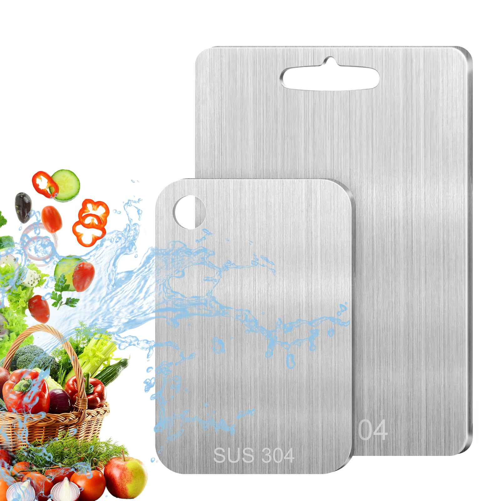 BUCOMTU Planche à Découper Double Face pour La Cuisine, Planche à Design Unique: Planche à Découper en Acier Inoxydable présente un design double face. Planche à Découper En Titane Planche à Découper En Acier Inoxydable 2025 - Planche à Découper Double Face De Qualité Alimentaire Pour Viande, Légumes Et Fruits, Facile à Nettoyer Essentiel De Cuisine Planche Acier Inoxydable Cuisine Matériaux de Haute Qualité: Planche a Decouper des Deux Côtés est fabriquée en acier inoxydable de haute qualité, solide et durable, difficile à corroder et à rouiller, et peut être réutilisée, est longue durée de vie Design élégant et léger, parfait pour la cuisine, le camping ou les fêtes. Le cadeau pratique, sain et durable (idéal pour la fête des Mères ou la fête des Pères !) qu'ils utiliseront avec plaisir au quotidien : la planche à découper en acier inoxydable ultime Avec ses dimensions généreuses (39 x 28 cm) et ses deux faces utilisables, elle s'adapte à toutes vos préparations. L'acier inoxydable de qualité alimentaire... Planches à découper lavable directement au lave-vaisselle La face avant sert à couper les fruits et légumes et l'arrière pour couper la viande, ce qui évite une utilisation mutuelle Planche de découpe en inox pour la cuisine, la cuisine, le camping en plein air Spécifications: Matériau: Acier inoxydable., Couleur: Argent. Grande Taille: Planche à Découper Double Face de Qualité Alimentaire est disponible en deux tailles (25 x 15 cm et 34 x 23 cm) pour répondre à tous vos besoins de coupe Vous n'avez pas à vous soucier des taches et des odeurs tenaces et restez hygiénique et frais à chaque fois que vous l'utilisez.