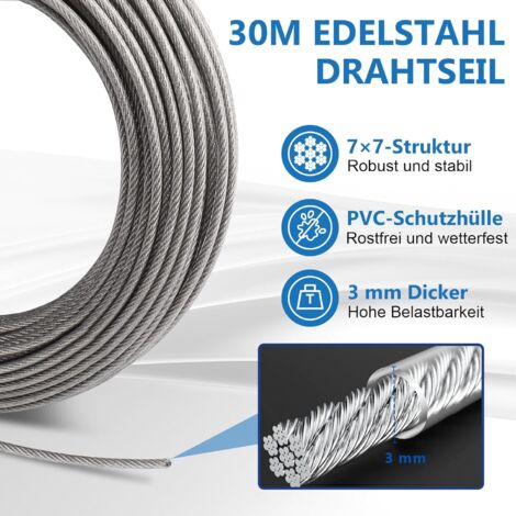 Corde en Acier Inoxydable à Suspendre Kit,50M/2mm,avec M5 Tendeur Câble 6 pièces réglable M5 câble tendeur 304 oeil et oeil en acier inoxydable... Cable Acier Inoxydable Kit De Câbles En Acier Inoxydable 50 M, Câble De 2 Mm, Treillis En Acier Gaine Pvc Cable En Acier Avec Oeillets Tendeur De Cable M5 Tendeur En Acier Inoxydable Pour Etendoir A Linge 87774150 Cable Acier Gainé MIVIDE Kit Câble Acier Inox 50M 2mm avec Tendeur Fil à Linge et Serre-Câble, Câble en acier inoxydable 50m x 2mm, Corde en Acier Inoxydable à Suspendre Kit, 7 x 7 Cable Acier 2 mm avec Serre-Câble M5 pour Corde à Linge,Guirlandes Lumineuses, Plantes Grimpantes et Rideaux Spécifications: - Matériau : Acier Inoxydable- Couleur : Argenté- Dimensions : Ø 2 mm, 50 m Contenu de l'emballage : 1 * Câble en Acier inoxydable de 2 mm 7 x 75 * Tendeurs de Câble M5 10 * Câbles Métalliques M210 * Tendeur Crochet M530 * Bornes de Sertissage M2 en Aluminium4 * Mousquetons M510 * Tube d'Expansion en Plastique 10 * Serre-Câbles M3 Le câble intérieur en acier se compose de 7 groupes de 7 torons, chaque toron contient 7 fils individuels. kit Cable Inox 2mm]:50M/2mm Cable Inox , 6 × Tendeur Cable Acier M5, 6 × Mousqueton inox 50mm, 12 × 50mm poignées , 15 × M2 cosses de câble , 28 × M2... Contenu de la Livraison : 1 rouleau de câble en acier inoxydable 50 m x 2 mm, 5 * tendeurs de câble M5, 10 * visseux M5, 10 * clip de câble en acier M2, 30 * ressort de bobine en aluminium m2, 4 * mousquetons M5, 10 * tube d'expansion en plastique et 10 * câble métallique dés à coudre M3 convient Pour clôtures galvanisées, guirlandes lumineuses suspendues, cordes à linge, plantes grimpantes et rideaux. Ensuite, les 7 groupes sont entrelacés dans un câble. Le câble en acier est réutilisable. Le câble en acier a une capacité de charge élevée et une résistance à la pression et peut être monté vous-même selon vos besoins.