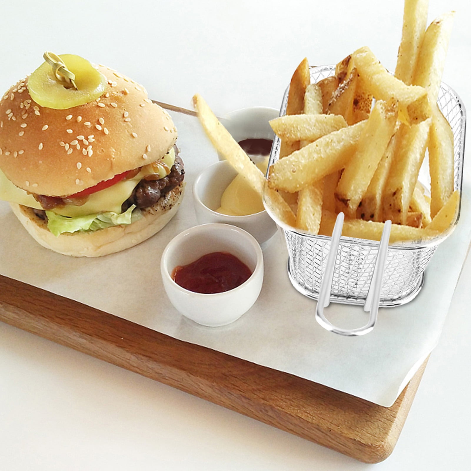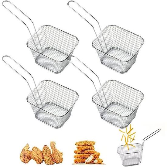 Le design en maille fine assure une répartition uniforme de l'huile et permet d'égoutter proprement l'excès de graisse pour des collations croustillantes et saines. Lot de 12 petits paniers à friteuse en acier inoxydable pour Facile à nettoyer et peu encombrant : le panier de friteuse a une surface lisse, passe au lave-vaisselle et facile à nettoyer à la main. Paniers à Frites En Acier Inoxydable 12 PCS Panier à Frites En Acier Inoxydable, Mini Panier De Panier Friteuse Rectangulaire Individuel Fabriqués en acier inoxydable de qualité alimentaire, les paniers sont robustes, inoxydables et sûrs au contact des aliments. Un accessoire de cuisine indispensable pour tous les amateurs de plats croustillants. 8Pcs ini Panier à Frites En Acier Inonxydable Rond Panier De Service... Utilisation polyvalente : que ce soit pour des frites, des rondelles d'oignon, des ailes de poulet, des crevettes ou des collations, ce panier de service en acier inoxydable est parfait pour la maison, les restaurants, les cafés, les barbecues ou le camping. La longue poignée facilite le retrait et protège efficacement contre les brûlures Principaux points forts · Matériau. Métal · Couleur. argent métallique · Marque. Molbory · Style. Moderne · Dimensions du produit. 17L x 8,5l x 6,5H centimètres Idéal pour frire différentes collations en même temps comme des frites, des crevettes ou des rondelles d'oignon. Lot de 12 paniers pratiques : le lot contient 12 paniers à frire, parfaits pour la cuisine, le restaurant ou la fête. Design en maille fine : le mini panier à friture dispose d'un maillage dense qui permet à l'huile de s'égoutter efficacement pour réduire l'excès de graisse. Description du produit : Ce lot de 12 paniers à frites est la combinaison parfaite de fonctionnalité et de style pour la cuisine, le restaurant ou la fête. Après utilisation, il peut être empilé ou accroché à la poignée - économise de l'espace et garde la cuisine bien rangée
