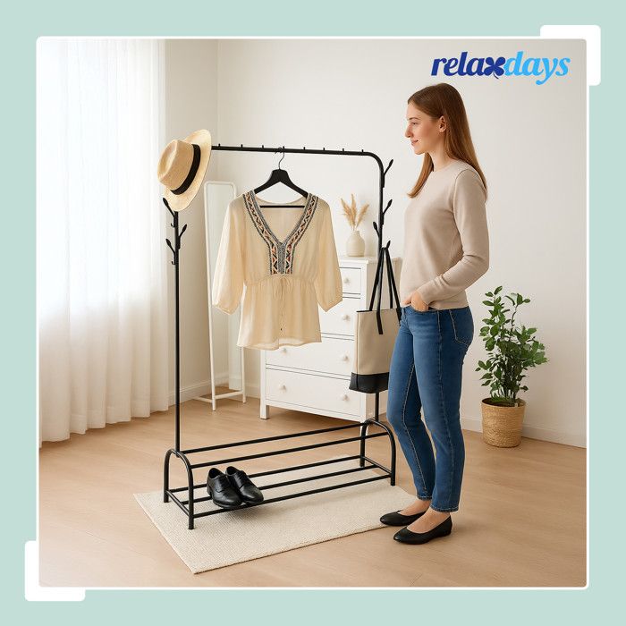 Relaxdays est une entreprise de e-Commerce au cœur de l'Europe spécialisée dans l'aménagement d'intérieur. Matériaux : acier inoxydable, aluminium , Couleur : argenté Faites pendre sur la tringle à vêtements vos vestes ou vos chemises. Portemanteau en acier inoxydable Envie d'ajouter à votre chambre ou votre entrée un meuble à la fois décoratif et pratique ? Alors ce portemanteau est fait pour vous ! Pour l'entrée, le bureau, la chambre, le dressing Portant non fixe Pour vos vestes, chemises, etc. Dimensions 162x151x42 Cm Relaxdays Portemanteau En Acier Inoxydable, Non Fixe, Robuste Portant Vêtements Réglable Relaxdays Porte manteau en métal à 2 têtes Capacité de charge : env., 20 kg , Poids : env., 2,2 kg Large variété de produits Portant en détail Aspect moderne Alors ce portemanteau est fait pour vous ! Faites pendre sur la tringle à vêtements vos vestes ou vos chemises. De plus, ce portant en acier inoxydable brillant ajoutera une touche d'élégance à votre intérieur. Enfin, la hauteur des pieds est réglable Dimensions H x L x P : env., 162 x 151 x 42 cm Pratique : portemanteau non fixe pouvant être placé dans la pièce de votre choix Design ouvert pour gagner du temps Portemanteau en bambou, avec 3 étagères et 3 crochets, non fixe, H x L... Spacieux : porte-vêtements qui offre de la place pour vos chemises, vestes, etc. 162 x 151 x 42 cm - Montage rapide et facile Enfin, la hauteur des pieds est réglable.