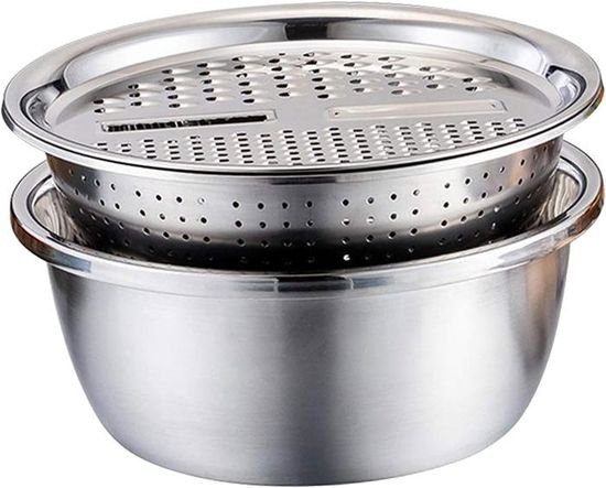 Passoire multifonctionnelle en acier inoxydable, 3 pièces et bol à mélanger pour laver et trancher des uits et des légumes ; Livraison: déc. 23 - 28 ; 1,00... Ensemble de 3 pièces - Bol, Râpe, Égouttoir En Acier Inoxydable Passoire Multifonction En Acier Inoxydable - Panier épais Et Maillé 3pcs Passoire Cuisine, Passoire Inox Avec Poignées, Passoires à Pâtes