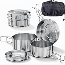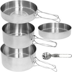 Peu encombrant ✅ : Le ne pèse que 1,23 lb (la dimension la plus longue lorsqu'elle est stockée est de 15,5 cm). Liste du paquet: 1 x Grande marmite - 6., 5cm (H) x 14cm (D) 1 x Petite casserole - 6cm (H) x 12cm (D) 1 * Poêle à frire - 3cm (H) x 15cm (D ) 1 * Assiette - 2cm (H) x 12., 3cm (D) 1 * Cuillère 1 * Sac de rangement Ustensiles Camping Pour 2-3 Personnes Kit De Camping Popote Inoxydable, Casseroles De Camping En Acier Inoxydable, Ustensiles De Cuisine Et Casserole De Camping, Gamelle Pour Camping Randonnée Bivouac Rechaud Gaz Bivouac Bestargot Kit de Casserole Camping, 4pcs Compact Kit de Cuisine Camping en Acier Inoxydable, Kit de Popote Bivouac Gamelle Vaisselle Set de Camping Accessoires... Choix économique ✅ : Le meilleur argent que vous avez jamais dépensé, nous vous avons surpris pour le prix, 5 en 1 kit casserole camping en acier inoxydable. Pourquoi choisir les ustensiles BeGrit ? 【 Acier inoxydable durable 】 Les ustensiles de cuisine de camping BeGrit sont fabriqués en acier inoxydable qui ne rouille pas et peut être utilisé pendant une longue période. Spécifications : Matériaux : Marmite, poêle et cuillère : acier inoxydable. Le kit de batterie de gamelle camping vous permettra de préparer des plats délicieux à l'extérieur - ne laissez rien vous empêcher de profiter de votre aventure en plein air ! Y compris 2 pots, 1 casserole, 1 assiette, 1 cuillère 【 Conception empilable 】 La batterie de cuisine de camping avec poignée pliable et peut être empilée, de sorte qu'il peut économiser de la place et facile à transporter à l'extérieur. Avec le sac à cordon inclus, vous pouvez ranger et transporter votre batterie de popote bivouac avec facilité Parfait pour le camping, la randonnée, le sac à dos, le pique-nique, etc. Casseroles et poêles légères et résistantes, idéales pour cuisiner des plats variés lors de vos aventures en camping et caravane Durable et facile à nettoyer ✅ : Le BeGrit casserole camping chauffe rapidement et constitue un kit de survie fait pour durer. Appréciez la cuisine en plein air ✅ : Les Stainless kit cuisine camping parfait pour le camping, la randonnée, le sac à dos, le pique-nique, les aventures en plein air et d'autres activités de plein air. Les ustensiles de cuisine peuvent être suspendus au-dessus du feu ouvert. Ferrino Popote Kochset bei Camping Wagner Campingzubehör