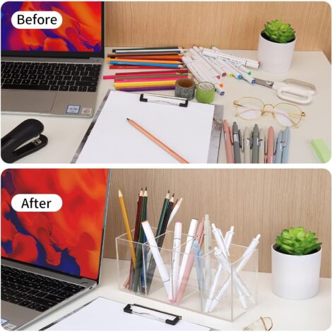 Fonctionne parfaitement comme porte-stylo de bureau, support de télécommande, support de pinceaux de maquillage, également comme décoration de table pour bureau d'étude., Dimensions : 8,12 x 10,66 cm. Pots à crayons en papier japonais Ce pot à crayons rond est fabriqué en acrylique, stable et solide, pas facile à casser, ce qui garantit sa durabilité et sa sécurité Pot à Crayons Acrylique Transparent RPLIFE Pot à Crayons En Acrylique Transparent Pour Bureau Accessoire Rangement Télécommande Le porte-stylo multifonction en acrylique est non seulement pour ranger vos fournitures de bureau de bureau telles que stylo, crayon, règle, gomme, marqueur, trombone, ciseaux et autres accessoires de bureau, également adapté pour les pinceaux de maquillage, les pinceaux de peinture, la télécommande, les accessoires pour cheveux, et plus encore. Porte-crayons peu encombrant, organisateur de bureau, accessoires de rangement. Inovra ® [Conception inclinée transparente]Le boîtier transparent vous permet de voir à travers le contenu, ce qui le rend facile et pratique à utiliser... Le porte-stylo multifonction en acrylique est non seulement pour ranger vos fournitures de bureau de bureau telles que stylos, crayons, règle, gomme, marqueur, trombone, ciseaux et autres accessoires de bureau, également adapté pour les pinceaux de maquillage, les pinceaux de peinture, la télécommande, les accessoires pour cheveux, etc Merci de ne commander que si vous acceptez cette marge d'erreur. Design ouvert: Ce pot a pinceaux maquillage a 3 compartiments hauts, ouverts en haut, permettant un accès rapide aux produits stockés à l'intérieur Dimensions : environ 8,12 x 10,66 cm., Poids approximatif : 100 g. Caractéristiques : Couleur : transparent., Composant : acrylique. La couleur de l'article peut varier de celle de la photo, en fonction des paramètres d'affichage et de luminosité de votre ordinateur, Dimensions : 8,12 x 10,66 cm. Pot à crayons en acrylique transparent - Accessoires de bureau - Porte-pinceaux de maquillage transparent Caractéristiques : Ce pot à crayons rond est fabriqué en acrylique, stable et solide, pas facile à casser, ce qui garantit sa durabilité et sa sécurité. Fonctionne parfaitement comme porte-stylo de bureau, support de télécommande, support de pinceaux de maquillage, également comme décoration de table pour bureau d'étude