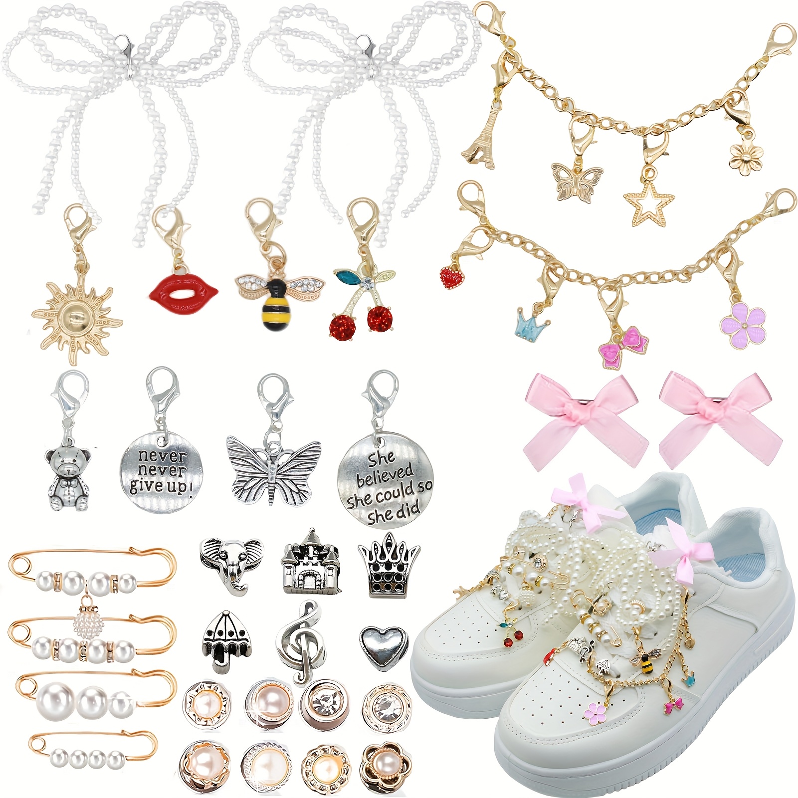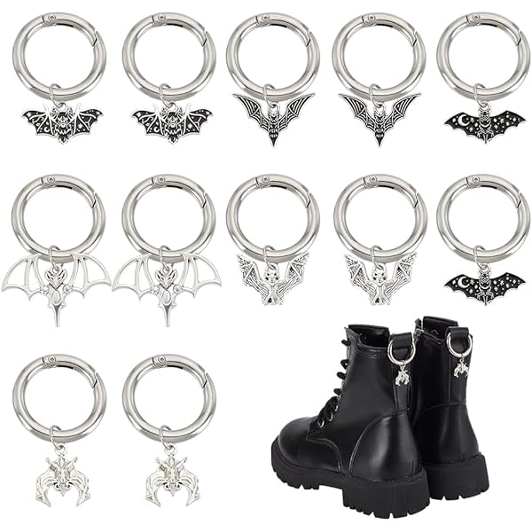 PH PandaHall Lot de 12 breloques de chaussures gothiques punk, 6 styles Ce sont des baskets de charmes. Voici comment personnaliser vos... Décorations Chaussures Style Triba GOMAKERER 16pcs 8 Styles Charmes De Chaussures En Alliage, Pendentif De Décoration De Chaussures Gothique, Breloque De Chaussure Cœur Et Crâne Avec Anneau à Ressort Pour Décor De Chaussures Lot 12 Pièces 6 Styles Différents 6 styles disponibles : cette breloque en alliage est disponible en 6 styles différents de pendentifs poignard. vous permet de l'utiliser facilement, donc pas besoin de colle, fixez simplement le clip de chaussure directement sur le lacet Supports de pendentif de cabochon oval de style tibétain en alliage en... Conception de boucle pratique : chaque breloque de chaussure DIY est équipée de boucles à ressort en alliage. Haute qualité et durabilité : nos pendentifs décoratifs pour chaussures sont fabriqués en alliage de haute qualité., ., Ils sont très forts, durable et ne se cassera pas facilement. Profitez de votre temps de bricolage : ces breloques de bottes conviennent à la plupart des articles avec des trous décoratifs. En outre, il est léger et portable, le rendant facile à transporter