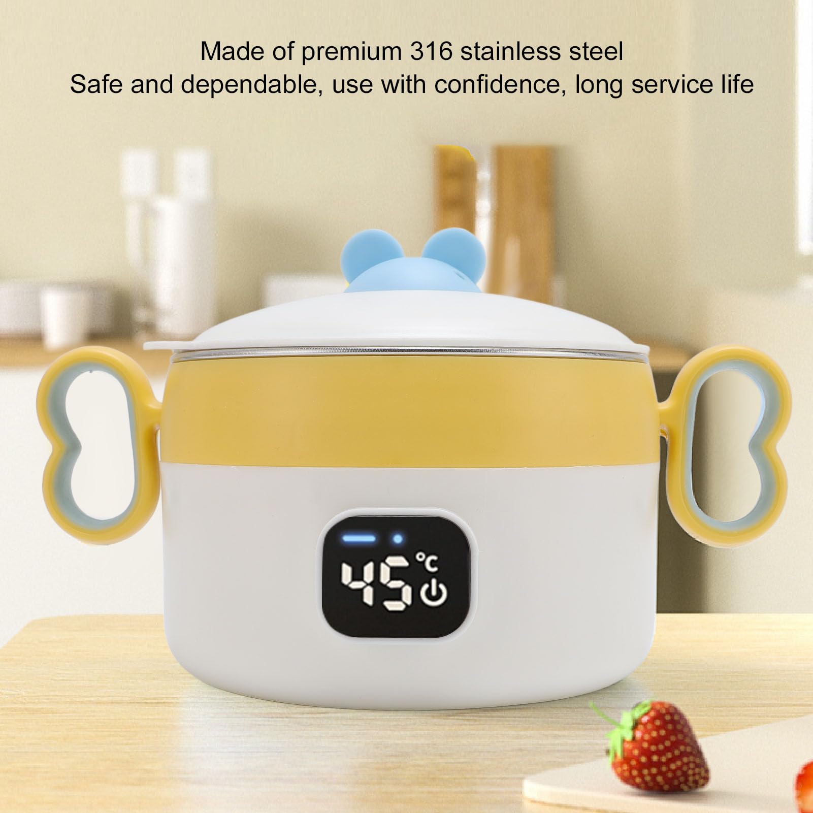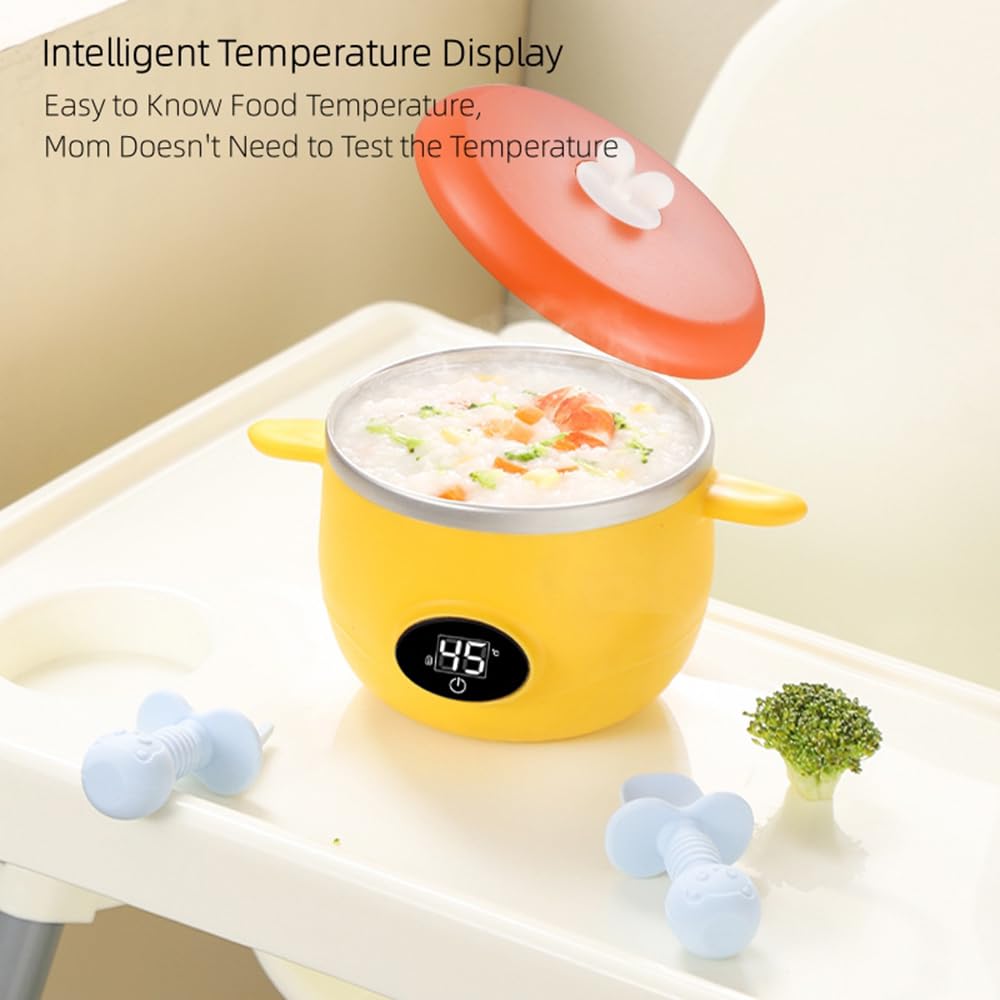 Idéal pour les parents actifs qui souhaitent nourrir leur bébé en toute tranquillité. Chauffe-repas Nomade Pratique BOL CHAUFFANT TRADITIONNEL Cor En Avec Housse En Acier Inoxydable Pour Bol Acier Inox 316 500ml Le Bol Bébé Chauffant Nomade est la solution idéale pour garantir des chauds et sûrs à votre enfant, que vous soyez à la maison, en voiture ou en déplacement. LAN - Bol Chauffant Intelligent Pour Enfants - Bol Intelligent Pour... La recharge USB est pratique, permettant une utilisation facile partout et à tout moment. Parfait pour un usage quotidien à la maison ou en déplacement. Il maintient automatiquement la température entre 38°C et 45°C - parfaite pour préserver les nutriments et éviter les brûlures. En acier inoxydable 316 de... Rechargeable par USB - Idéal pour Voyage : Grâce à sa batterie lithium rechargeable de 3000mAh, le bol reste chaud pendant plusieurs heures, ce qui le rend parfait pour les repas nomades à emporter. Il maintient les aliments à une température constante de 45°C, idéale pour préserver la texture et les nutriments des purées, soupes et lait de bébé. Matériau Sûr et Résistant - Acier Inoxydable 316 : Fabriqué en acier inoxydable de qualité 316, ce bol est non seulement aussi exempt de métaux lourds, garantissant des repas sûrs et sains pour votre bébé. Bol Bébé Intelligent Chauffant – Bébé-nuage Sa batterie lithium rechargeable via USB vous assure une autonomie longue durée, tandis que son design étanche et facile à nettoyer le rend parfait pour un usage quotidien. Design Pratique & Compact : Léger et pratique, le bol est équipé d'un couvercle facile à ouvrir et d'une base antidérapante pour une prise en main sûre.