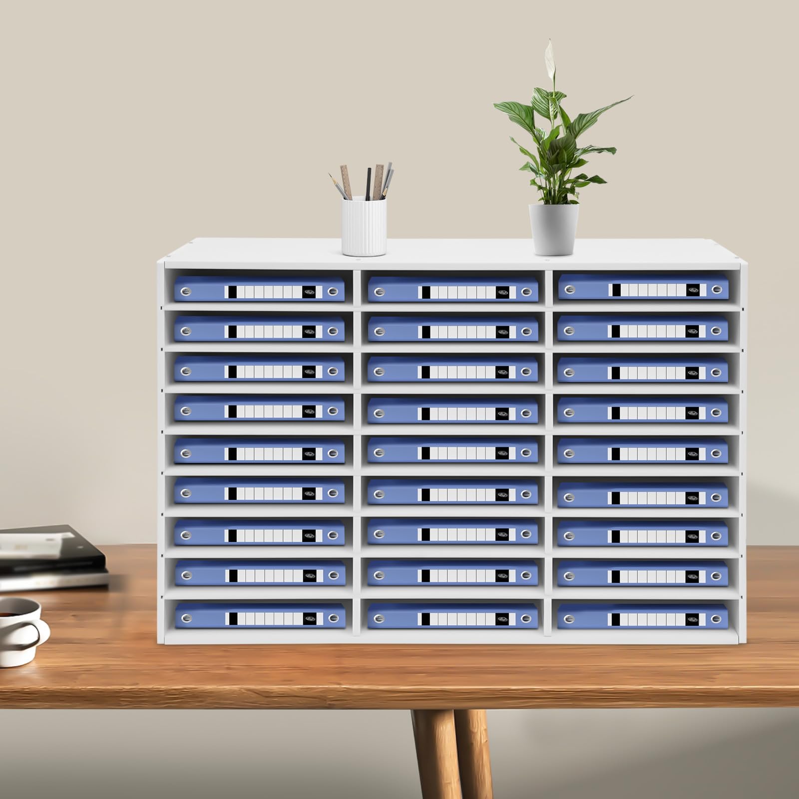 Gants pour l'installation : l'emballage comprend une paire de gants pour protéger vos mains contre les blessures lors de l'installation. 1 manuel d'utilisation en anglais. Organiseur de documents en bois de haute qualitéÊtes-vous entouré d'un fouillis de documents et vous vous demandez ce qui est important ? Il est temps de s'organiser. L'organiseur de documents à 27 compartiments SucceBuy garde vos fichiers, formulaires et documents organisés et accessibles. Chaque compartiment offre suffisamment d'espace pour tous vos documents. Les étagères amovibles... Forme : rectangulaire Style : moderne Capacité de chaque fente : environ 600 feuilles de papier A4., Nombre de compartiments : 27., Charge maximale : 50 kg. Détails : Base stable : la base dispose de six patins antidérapants qui empêchent l'organisateur de glisser et d'éviter de rayer le sol. Dimensions du produit : 80 x 30,5 x 55,5 cm. Description : Êtes-vous toujours préoccupé par le désordre du bureau ? Cet organisateur de littérature assure un rangement efficace et esthétique. Papier de verre pour le polissage : avec le papier de verre, vous pouvez polir les bords des planches pour éviter de rayer les mains. Porte Documents Pvc Multifonction Organisateur De Papier De Bureau En Bois 7 Animaux Pour Bureau, Porte- Documents De Bureau Et Porte-papier A4 Pour école à Domicile Rangement Bureau PVC Matériau de haute qualité : fabriqué en PVC de haute qualité, il est résistant à l'usure et aux chocs et ne se déforme pas facilement, ce qui garantit une longue durée de vie. VEVOR Organisateur de Bureau en Bois 35,5x30,5x33 cm Trieur de Documents à 5 Compartiments... Épaisseur de la plaque supérieure : 1 cm. Contenu de la livraison : 1 organiseur de littérature., 1 paire de gants., 1 papier abrasif., 6 patins antidérapants., 1 jeu de vis., 1 tournevis. dans les maisons, les bureaux ou les écoles. Organiseur De Documents Boîte Aux Lettres à 27 Compartiments Avec Facile à installer : il a une structure simple et un emballage complet. Avec ses 27 compartiments et son design sans porte, il peut facilement contenir du papier A4, des magazines, des reçus et des livres, tous organisés et clairs en un coup d'œil. Dimensions de chaque fente : 25 x 5,5 cm. Épaisseur des étagères : 0,5 cm. Conception sans porte : la conception sans porte permet d'économiser de l'espace pour ouvrir et fermer. Il peut également être utilisé pour ranger des jouets pour enfants, des livres, des bandes dessinées, etc. Utilisation : Pour ranger des fichiers, des contrats, du papier A4, des reçus et d'autres documents de bureau. Caractéristiques : Matériau : PVC., Couleur : blanc. Facile à nettoyer : la surface est lisse et plate, de sorte que vous pouvez facilement essuyer les taches avec un chiffon humide, ce qui est pratique et sans effort. Il peut vous aider à obtenir une gestion ordonnée et à rendre le porte-documents moins encombré.
