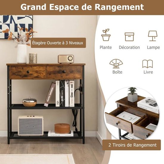 Les pieds réglables augmentent encore la stabilité de la table. COSTWAY Bibliothèque Cube à 2 Niveaux,Etagère De Rangement Avec 2compartiments Ouverte Kit Anti Basculement Etagere De Presentation A 2casiers Blanc 93824584 Le designer conçoit la table en adoptant le style industriel. Giantex France LIFEZEAL Table Console En Bois+Acier, Meuble D'Entrée à 3 Niveaux,Table Console étagère Ouverte Marron Entre le plateau bas et le fond des tiroirs il y a un espace où vous pouvez mettre quelque chose de plus haut. Tous les détails reflètent la sérieuse et la prudence du designer. URBNLIVING Table console à 2 niveaux, table de canapé industrielle avec... En outre, cette table est adaptée aux différents styles de décoration d'intérieur. Tous les deux matériaux représentent la qualité du produit. Bibliothèque, Meuble de Rangement à 3 Niveaux avec Tiroir, Étagère... En outre, la forte stabilité garantit la sécurité d'utilisation, de sorte que vous pouvez utiliser cette table de grande stabilité avec tranquillité d'esprit. ✔️ [Structure Solide] Le design assure la stabilité de la table au plus haut possible, et pour renforcer la stabilité, il est particulièrement ajouté une structure en fer en forme de X entre les deux pieds sur les deux côtés. ✔️ [Style Industriel] Lorsque vous entrez à la maison, vous pouvez voir la table d'entrée à première vue, donc il est important de choisir une table magnifique. La table a un grand espace de rangement : sur le plan de la table, vous pouvez ranger de nombreux articles et les deux tiroirs ouverts sont parfaits pour le rangement. La décoration de style industriel donne aux personnes une beauté simple.