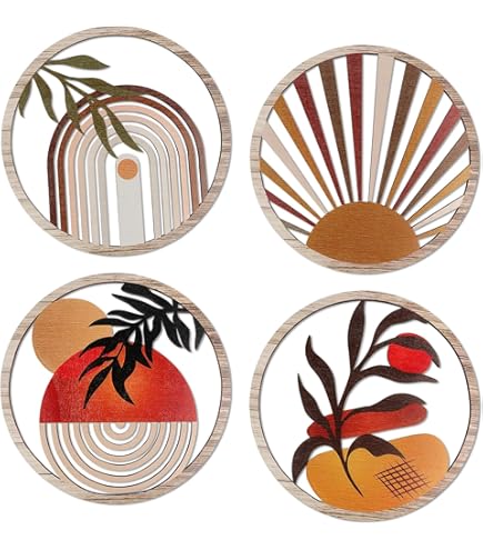 Une combinaison harmonieuse de créativité et de décoration fonctionnelle pour un rendu et captivant. Ces œuvres d’art polyvalentes conviennent également aux rebords de fenêtres, porches, patios, balcons, galeries ou étagères, ajoutant du charme à tout décor inspiré de la ferme. Déco Murale Style Ferme Décor Mural En Bois Boho - Décorations Murales Bohèmes Pour Séjour Set 4 Disques Bois 20x20cm Cette décoration murale bohème présente des textures organiques en bois naturel, apportant un charme rustique et bohème à votre maison tout en s'intégrant... Contenu du produit: ensemble de disques en bois en 4 pièces (besoin de coller l'adhésif sur vous-même) Matériau: bois Taille du produit : (environ) 20x20x0,5 cm / 7,87x7., 87x0,2 pouces Poids: 120g Méthode d'emballage: Sac OPP Liste: 1 Set * Boho Wall Art (4 pièces: dos avec adhésif transparent) Note: En raison de différents paramètres d'éclairage et d'écran, la couleur de l'élément peut être légèrement différente de l'image. Caractéristiques Contenu du produit: ensemble de disques en bois en 4 pièces (besoin de coller l'adhésif sur vous-même) , Matériau: bois L’art mural boho présente 4 cadres ronds en bois avec une esthétique géométrique, parfait pour rehausser les espaces rustiques et à thème bohème. Artisanat Vintage : Chaque pièce de décoration murale bohème présente des bords poncés artisanalement et des finitions teintées à la main pour un attrait vintage avec des transitions de texture naturelles, parfaitement conçues pour embellir n'importe quel décor bohème En raison de différentes mesures manuelles, veuillez permettre une différence de taille de 1 à 2 cm. Taille du produit : (environ) 20x20x0,5 cm / 7,87x7., 87x0,2 pouces , Poids: 120g Montage sans perceuse : L'installation facile grâce à l'adhésif fort au dos garantit que l'art mural boho est amovible et respectueux des murs, sans nécessiter d'outils ni laisser de traces. Sa polyvalence en fait un choix idéal pour ceux qui souhaitent allier style et authenticité. Décor mural en bos de palette Son design élégant en fait un ajout précieux pour toute maison moderne ou traditionnelle. Idéal pour apporter une ambiance boho à votre maison sans endommager les surfaces ni utiliser de matériel supplémentaire. Matériau premium Donnez du caractère à vos espaces avec cette œuvre murale qui affiche des textures organiques réalisées en bois naturel, garantissant un charme rustique bohème qui s'accorde parfaitement aussi bien avec les décors modernes que traditionnels. Décorations Murales Boho avec Illustrations | Décorations Murales