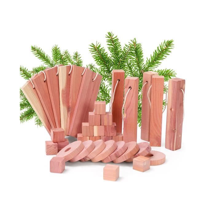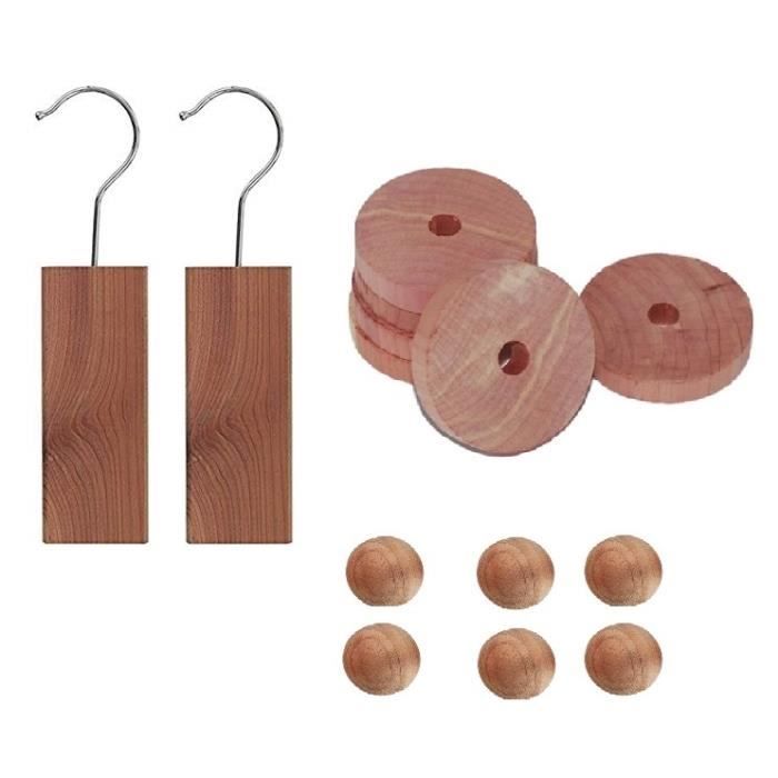 Cedar Lot x 6 pastilles antimites en cèdre naturel, Brown, Unique PROTECTION CONTRE LES MOTS 100% NATURELLE ET SANS CHIMIE : Notre protection contre les mites est constituée de matières premières renouvelables telles que le bois de cèdre naturel et l'huile essentielle de bois de cèdre. Bois De Cedre Anti Mites Quertee 30x Anneaux En Bois De Cèdre Comme Protection Contre Les Protection Naturelle Mites Vêtements Pour ce faire, il suffit de suspendre les anneaux de cèdre / fleurs de cèdre sur un cintre ou de les placer dans un tiroir. Nos anneaux en bois de cèdre sont la solution naturelle pour protéger vos vêtements, notamment les lainages, des mites textiles. Glissés sur le crochet d’un cintre ou déposés dans un tiroir, ils diffusent un parfum boisé agréable tout en repoussant efficacement les nuisibles Contenu de la livraison : 42 anneaux en bois de cèdre bio de qualité supérieure d'un diamètre de 4 cm dans le kit, avec un beau sac en organza. · Produit naturel... DURABLE : Si l'odeur de notre anti-mite se dissipe, vous pouvez simplement rendre rugueux les anneaux de cèdre avec le papier de verre gratuit fourni par nos soins et l'odeur protectrice se répandra à nouveau comme au premier jour. PROTECTION IMMÉDIATE CONTRE LES MOTS : Les mites ont une aversion naturelle pour l'odeur du bois de cèdre, c'est pourquoi votre garde-robe est maintenant à l'épreuve des mites. BAGUES PRATIQUES EN BOIS DE CEDRE : Que ce soit dans l'armoire ou en suspension libre, vous pouvez facilement attacher notre agent anti-mite au cintre ou le placer dans l'armoire grâce au trou. L'odeur du cèdre peut chasser les mites gênantes et protéger vos vêtements sans produits chimiques. La mite évitera volontairement votre placard et les pièges à mites ne sont plus nécessaires Bagues parfumées en bois de cèdre Les rafraîchisseurs d'armoire sont fabriqués en bois de cèdre naturel et répandent une odeur agréable dans l'armoire grâce à l'huile essentielle de bois de cèdre.