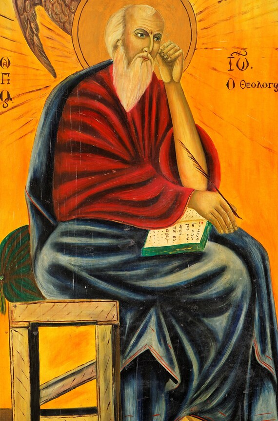 Décoration Spirituelle Chrétienne ANCIENNE ICÔNE ORTHODOXE En Bois De Tempera Peinte à La Main La Vierge Décoration Religieuse Bois Anienne iône religieuse sur bois anton Vaud Saint Jean : « L'Apôtre et l'évangéliste ne sont pas la même personne Fabriqué à la main en Grèce en utilisant des techniques traditionnelles inspirées de l'art orthodoxe byzantin. RARE ICÔNE GRECQUE orthodoxe. AGIOS MINAS. Début 20e. Bois, métal... Cadeau religieux parfait : un choix attentionné pour les baptêmes, les fêtes du nom ou les célébrations spirituelles. Représente Saint Jean le théologien (Jean l'évangéliste), l'un des apôtres du Christ et l'auteur de l'Évangile de Jean. Dimensions : environ 13 x 9 cm. Cette icône en bois de Saint Jean l'évangéliste (Agios Ioannis Theologos) est fabriquée à la main en Grèce avec une attention aux détails orthodoxes traditionnels.