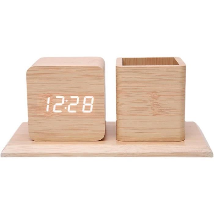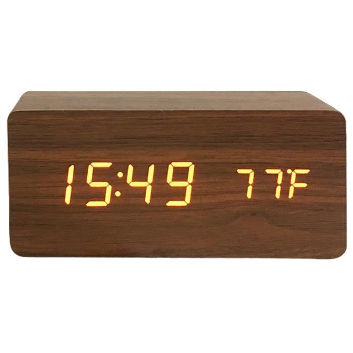Le forfait comprend 1 x horloge numérique en bois 1 x boîte d'emballage Noir_Blanc, Marron_Bleu, Marron_Rouge, Jaune_Blanc, Noir_Bleu, Noir_Rouge. [FONCTION MULTIPLE] - À l'exception de la fonction de base Heure (12/24), Réveil et Température (F / C), cette horloge de table Fashion LED prend également en charge le mode d'économie d'énergie, 3 ensembles d'alarmes, des alimentations de sécurité 2 et Activation vocale, fonction de mémoire de temps, etc. Nous avons un manuel d'utilisation, vous pouvez nous contacter et nous vous l'enverrons. [FONCTION DE COMMANDE VOCALE] -Appuyez sur la touche Bas et choisissez «ON: Sd» pour le mode de contrôle du son. 1) Commande vocale activée 2) Commande vocale fermée Lorsque la commande vocale est activée, le son dépasse 60 DB, l'horloge s'allumera. 2 Alimentation Il y a 2 manières pour l'alimentation: 1., Chargement du câble USB (le forfait comprend) 2., 4 piles AAA (nous ne recommandons pas cette méthode, car elle peut consommer rapidement) ᐅ Radio réveil digital en bois Nous vous recommandons d'utiliser le cordon d'alimentation fourni avec nous pour l'alimentation électrique. Le style de personnalité à la mode de Bamboo / Wood, une conception fraîche et artistique dans la nature, a rendu notre maison gracieuse et élégante. Choix de couleurs riche Il y a 6 couleurs pour vous de choisir. Réveil LED en Bois Artificiel,Horloge Numérique Activation Sonore,avec 4 niveaux de luminosité Il existe 4 niveaux de luminosité, vous pouvez baisser la luminosité la nuit., L3,L2,L1,L0., La valeur par défaut est L3, c'est la luminosité la plus élevée. ON : L'alarme est activée, - - : L'alarme est désactivée. Une fois ouvert, l'écran s'éteindra après 15 secondes. [CHOIX DE COULEURS RICHES] - Il y a un total de six couleurs au choix, à savoir Jaune_White, Brown_Red, Brown_Blue, Black_White, Black_Red, Black_Blue. Spécification Matériau : plastique + placage de bois Taille: 15*4*7,4 cm/5,9*1,6*2,8 pouces Poids : 240 g/0,53 lb Application : maison, bureau, chambre, salle d'étude, dortoir, hôtel, magasin, etc. Kindly-Réveil LED en Bois Artificiel avec Affichage Heure Date... Horloge Numérique Design ThreeH Réveil Numérique,Cube Moderne En Bois Design Avec Contrôle Du Son PLUIESOLEIL LED Horloge De Bureau Décorez Votre Maison Et Le Bureau,Alimenté Par USB Ou Batterie AC10 Jaune Blanc Réveil Affichage Température Vous pouvez appuyer sur la touche ''UP'' pendant 3 secondes et appuyer sur ''UP/DOWN'' pour régler la luminosité. Après l'heure, la température et date sont affichés, il est automatiquement désactivé. Il existe un mode supplémentaire ON:E ou --:E pour décider s'il sonne le week-end ou non.