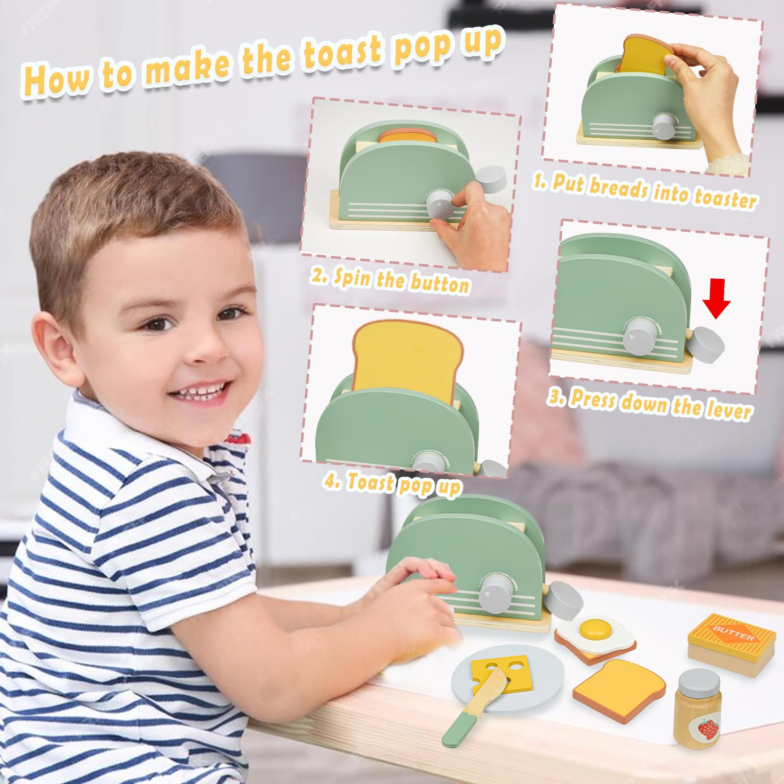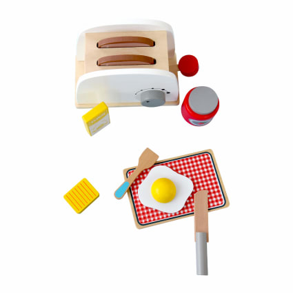 Grille-pain Enfants Bois Acheter - Jouets enfants pour l'intérieur Tender Leaf Toys Ensemble de grille-pain de petit déjeuner Mini Chef - Jouet pop-up classique en bois pour la cuisine - Développe les compétences sociales, créatives et imaginatives - Jeu de rôle d'apprentissage - À partir de 3 ans. Cet impressionnant ensemble en bois de qualité est un jouet pratique qui gardera les enfants... Ensemble Cuisine Bois Accessoires Jouets De Cuisine En Bois Pour Enfants, Ensemble De Jeu Grille-Pain Pop-Up 9 Pcs, Jouet Éducatif Précoce Montessori, Nourriture De Jeu Pour Tout-Petits Grille Pain Enfant Description du produit Commencez la journée avec une tranche de plaisir imaginatif avec notre ensemble de grille-pain pop-up en bois Parfait pour les tout-petits âgés de 3 ans et plus, ce charmant jouet de cuisine sur le thème du petit-déjeuner inspire la créativité, l'apprentissage pratique et le jeu de simulation sans fin. Inspiré par les principes Montessori, il soutient l'apprentissage précoce par le jeu de rôle – améliorant la motricité fine, le développement social et la croissance du langage. Ensemble de Jouets pour Machine à Pain, Grille-Pain Pop-up pour Cui... Doté d'un grille-pain pop-up avec levier de travail, cet ensemble comprend tout ce dont votre enfant a besoin pour un repas du matin imaginaire : tranches de toast, morceaux de beurre, un couteau en bois, œuf au plat, confiture, fromage, bacon, avocat et autres garnitures saines. Grille-pain pop-up amusant : grille-pain en bois réaliste avec levier pop-up fonctionnel – ajoute de l'excitation et du réalisme à faire semblant de jouer dans la cuisine Cadeau idéal pour les enfants à partir de 3 ans : ensemble de jeu magnifiquement conçu pour les anniversaires, Noël ou le plaisir quotidien – idéal pour les garçons et les filles. Construction en bois de qualité supérieure : fabriqué à partir de bois durable de haute qualité avec des bords lisses et des peintures non toxiques sans danger pour les enfants.