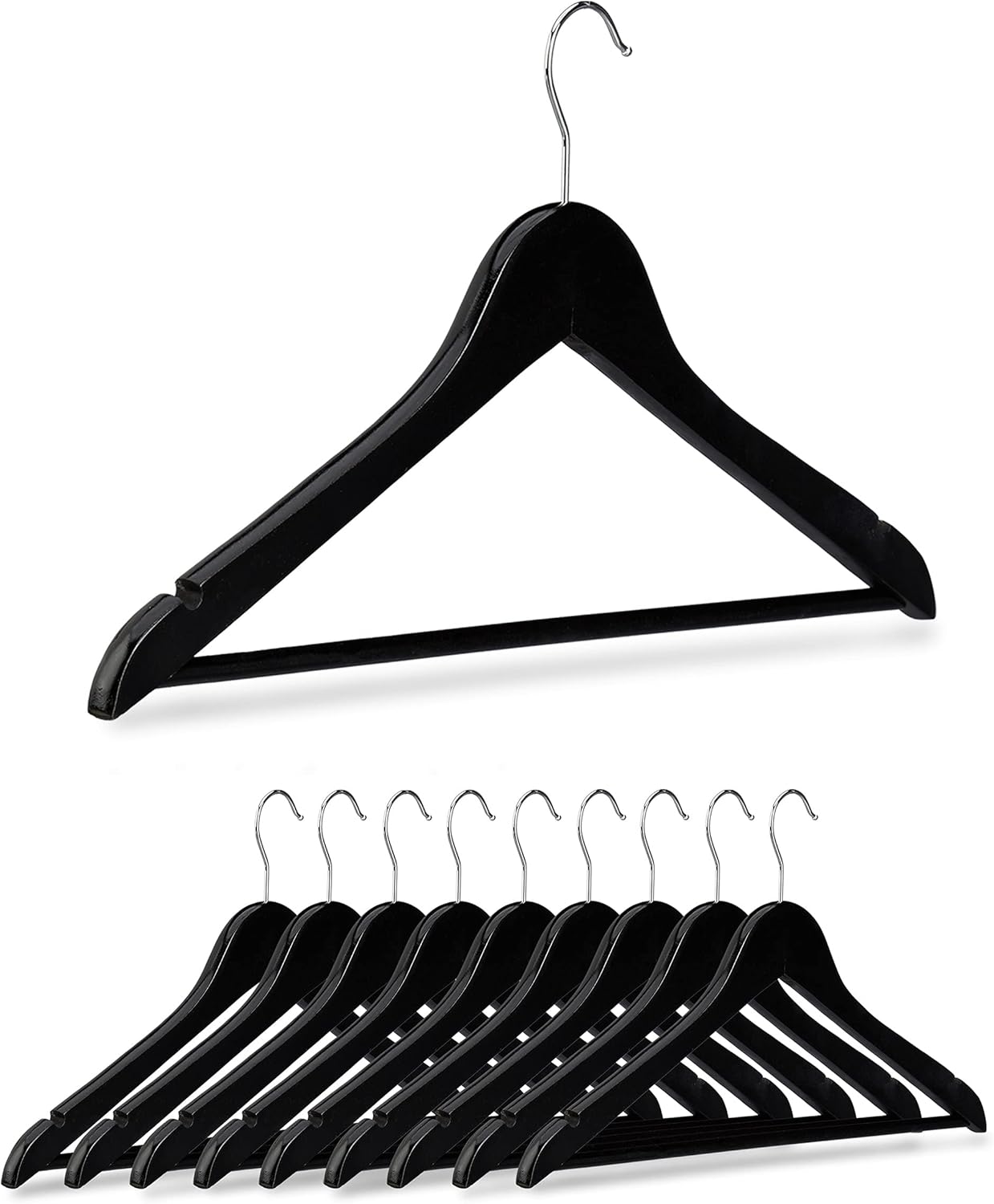 Crochet Rotatif 360 Lot 5 Cintres Bois Relaxdays - Clips Réglables Caoutchoutés - 37 Cm - Crochet Rotatif Cintres Pinces 4pcs Vintage crochet en bois naturel mural cintre en maison de chambre... Cintre En Bois Relaxdays Cintre à Costume Traverse En Bois, Set De 12, Cintre Pantalon Epaule Large Bois Metal Blanc 84643047 Cintre Pliable Jupes Les quatre tringles disposent chacune de 2 clips en métal que vous pouvez déplacer selon vos besoins. Cintre multiple à jupes en détails • Dimensions par cintre HxlxP: 45,5 x 39 x 2,5 cm • Dimensions par clip HxlxP: 4,5 x 2,5 x 2,5 cm • Longueur de la tringle: 34,5 cm • Poids par cintre: 400 g • Matériel: bois de Lotus, fer, caoutchouc • Couleur: nature, noir, argenté Cintre à pantalon en bois • De l’ordre dans le placard • 4 tringles avec 8 pinces • Pour 4 jupes ou pantalons • Cintre pliable • Clips en caoutchouc rotatifs Contenu de la livraison • 1 ou 3 x Cintres multiples • Livrés sans objet de décoration Contenu du coffret 1 ou 3 x Cintre multiple Cintre multiple en bois, lot de 12, pour robes pantalons, gain de place... Rangez vos vêtements sans plis et sans vous prendre la tête. Spacieux: grâce à ce cintre pratique, vous avez besoin de peu d’espace dans le placard Détails sur le cintre multiples à pantalons: Dimensions totales HxlxP: 45,5 x 39 x 2,5 cm Détails: cintre multiple de qualité avec clips mobiles - Faites du rangement pour plusieurs années