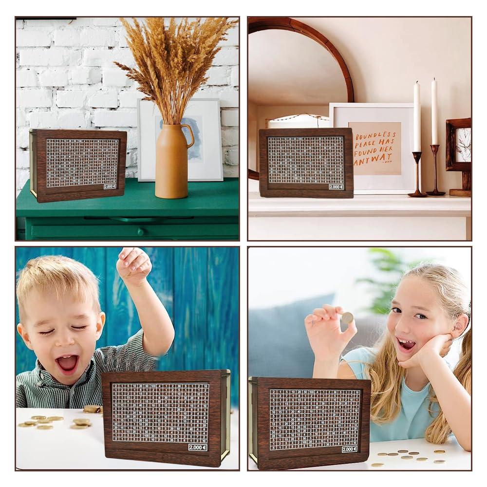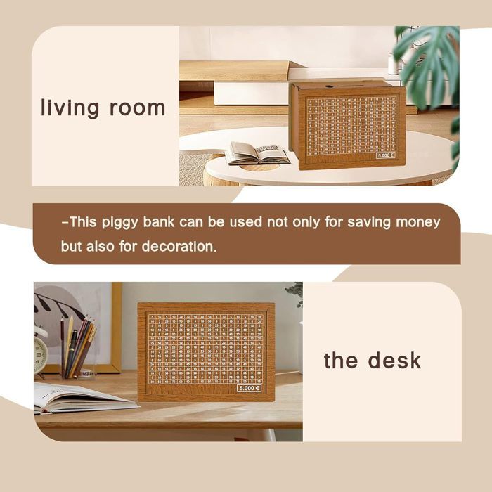 Contenu de la livraison : 1 tirelire en bois., 1 marqueur. Tirelire en Bois,Tirelire Réutilisable,Tirelire avec Objectif,Tireliure... Apprenez à vos enfants la valeur de l'épargne et découvrez comment économiser est plus amusant Le kit comprend une tirelire et un marqueur pour capturer les progrès de l'épargne. Cadeau éducatif Financier Tirelire En Bois, Tirelire Pour Objectif D'économie (2000 Tirelire Economie Tirelire en bois : lors de l'achat de cette tirelire en bois, vous recevrez 1 tirelire en bois et 1 marqueur qui vous aidera à ranger la monnaie et l'argent liquide. ♡ Avec son matériau et son design unique, cette tirelire est non seulement pratique, mais aussi esthétique. Évitez tout contact avec l'eau pour éviter d'endommager le bois. Matériaux de qualité supérieure : cette tirelire est fabriquée en bois respectueux de l'environnement, durable et pas facile à endommager. La finition de surface fine et lisse ne contient pas de bavures et est moins fragile que les matériaux semblables au verre et à la céramique, ce qui la rend sûre à utiliser même pour les enfants. La tirelire avec chiffres à cocher est également parfaite comme cadeau pour faire plaisir à vos proches. Caractéristiques du produit : Matériau : bois., Dimensions : voir photo., Couleur : bois naturel. Fabriquée à partir de bois durable et durable, cette tirelire est conçue pour durer des années. Le design réutilisable permet de réinitialiser l'objectif d'économie encore et encore, ce qui le rend parfait pour plusieurs objectifs d'économie Facile à installer et à utiliser, c'est un choix idéal pour les jeunes et les moins jeunes. Les instructions de montage sont incluses dans le paquet. Tirelire en Bois Tirelire pour Objectif D'économie 10000