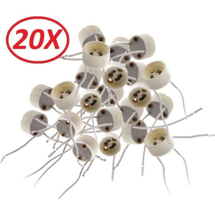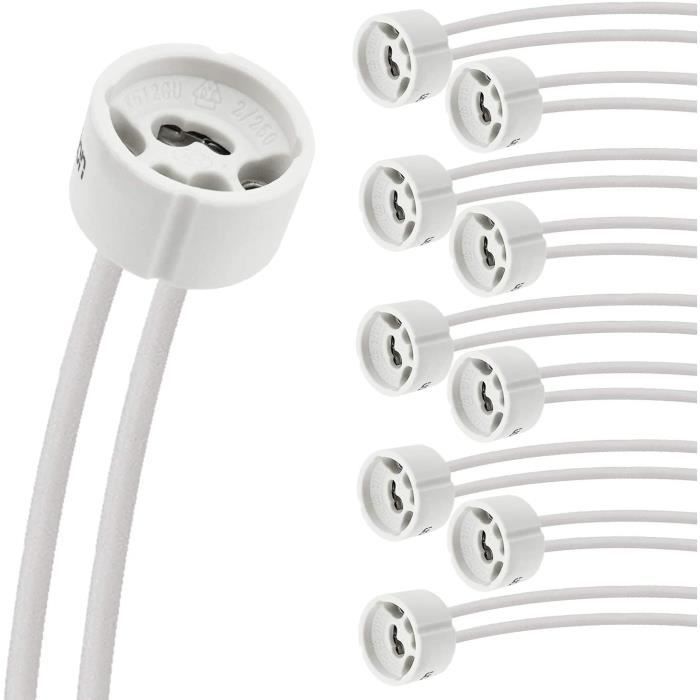 Par rapport aux douilles GU10 traditionnelles, ce socle offre une double protection. Installation facile : le montage de cette douille GU10 est un jeu d'enfant. Les douilles GU10 sont idéales pour une utilisation à la maison ainsi que pour les éclairages sur rail, les spots encastrés et les éclairages d'accentuation. Contenu de l'emballage : 24 douilles GU10., 【Paramètres détaillés】La douille GU10 présente les paramètres spécifiques suivants : courant électrique : 3 A, puissance : 0-300 W, tension : 0-250 V, résistance à la chaleur jusqu'à 600 ℃, longueur du fil : 15 cm x 0,75 mm². Douille pour ampoule GU10 en céramique - Kanlux 0402 En outre, ce qui confirme sa qualité et sa sécurité. Sécurité : grâce à sa haute capacité d'isolation, la douille offre un fonctionnement sûr et protège contre les courts-circuits électriques. Lot de 10 douilles en céramique GU10 avec connecteur de câble 2 A 250 V... Parfait pour l'éclairage de la chambre à coucher, du salon, de la cuisine, du studio, etc. WIYETY Lot de 24 douilles GU10 : culot en céramique avec fil de 15 cm, protection incendie GU10, diamètre du câble 0,75 mm², pour spots LED et ampoules halogènes, douilles GU10 Matériaux de haute qualité : la douille de lampe GU10 en céramique est fabriquée en céramique de haute qualité, qui offre une excellente dissipation de la chaleur et une isolation électrique. Il vous suffit de connecter le câble d'alimentation au pont de connexion PC et d'insérer les douilles GU10 dans le socle. Douilles GU10 Céramique Lot De 24 Douilles GU10 : Culot En Céramique Avec Fil De 15 Douille Gu10 Plafond Sollbry Mr16 Lot de 6 douilles de lampe MR16, adaptateur de connecteur... Multifonction : douille GU10 parfaite pour la décoration, comme les mariages, les fêtes et les barbecues de jardin.