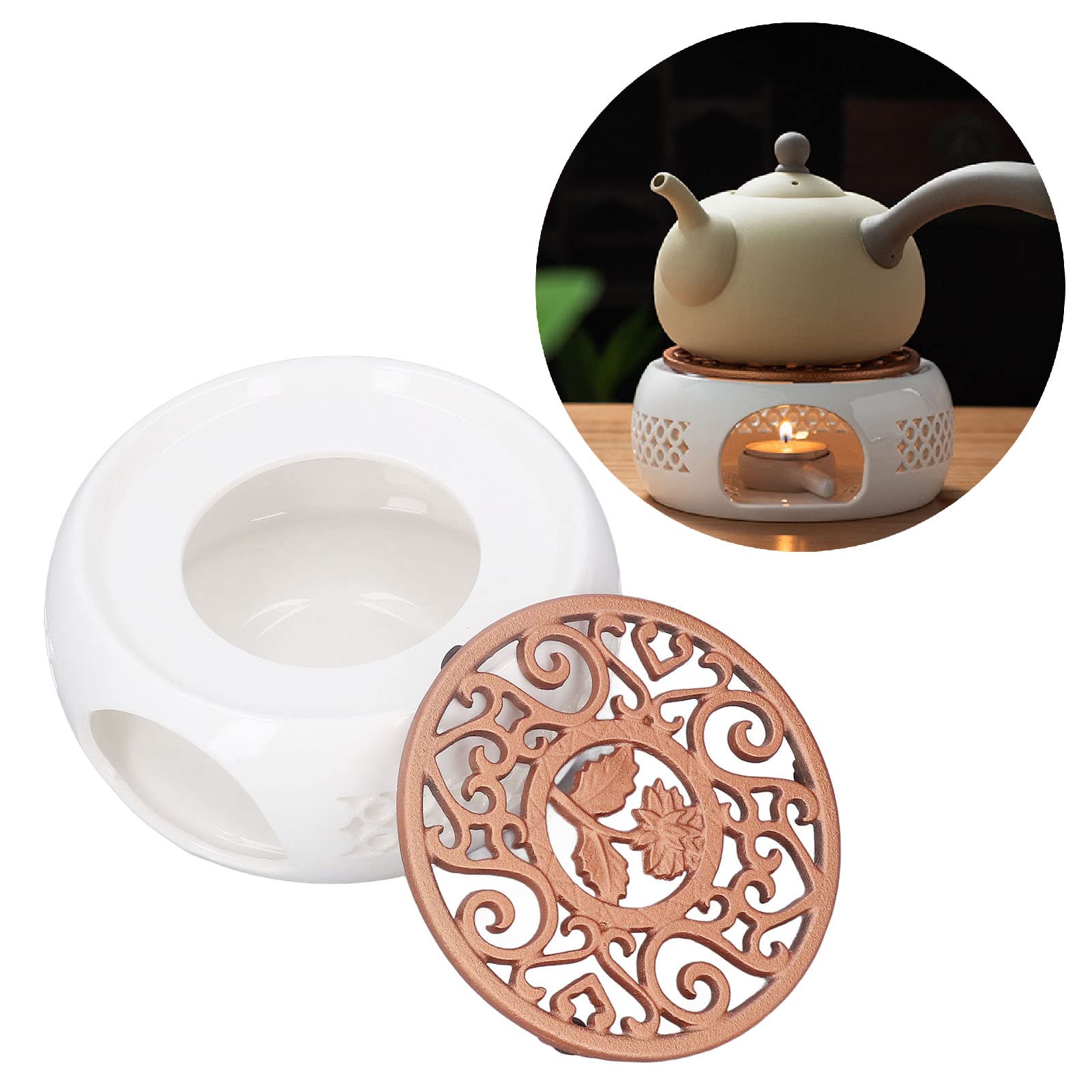 La théière en céramique maintient la température des boissons et des aliments constante pendant une longue période, profitez des moments parfaits avec du thé chaud, du café ou du lait. Dimensions du réchaud : 11,3 x 5,8 cm. Facile à utiliser : placez la bougie allumée dans la cuillère, insérez-la à travers l'ouverture sur le côté du chauffe-théière et placez la théière sur la plaque de cuisson pour profiter du thé chaud à tout moment. Chauffe-thé en céramique Avec son design creux et sa fonctionnalité pratique, il garde non seulement vos boissons au chaud, mais apporte également une touche de style à votre thé et à votre thé de thé. Fdit Chauffe-thé en céramique Chauffe-Théière en Céramique, Chauffe Spécification : Matériau du réchaud : céramique Matériau du bougeoir : céramique Matériau du tapis de cuisson : fonte Couleur : blanc. Un tapis ignifuge offre une excellente protection, empêche les théières de se cogner et garantit que vos théières restent bien protégées. Suspension lustre industrielle en métal creux sculpté, 124*15*15cm... Utilisation polyvalente : lorsque la bougie chauffe-plat brûle, le support de chauffe continue à diffuser de la chaleur, idéal pour réchauffer les pots à thé et à café, les pots à soupe, les casseroles à fondue, le vin chaud ou d'autres boissons chaudes et un cadeau parfait pour les amateurs de thé. Notre réchaud à thé en céramique de qualité supérieure, le compagnon idéal pour tous les amateurs de thé. Matériau de haute qualité : notre réchaud à thé est fabriqué en céramique de haute qualité, à la fois résistante à la chaleur et esthétique, tandis que le dessous de verre en fonte protège la théière de l'exposition directe à la chaleur. Accessoire Déco Chaleureux Pour Thé Café LPZMPZ Chauffe-théière En Céramique - Chauffe-théière Avec Photophore Accessoire Déco Table Chaleureux Kyusu à Bec Long - TeaPot Renaissance Taille universelle : théière chaude diamètre 11,3 cm, hauteur 5,8 cm.