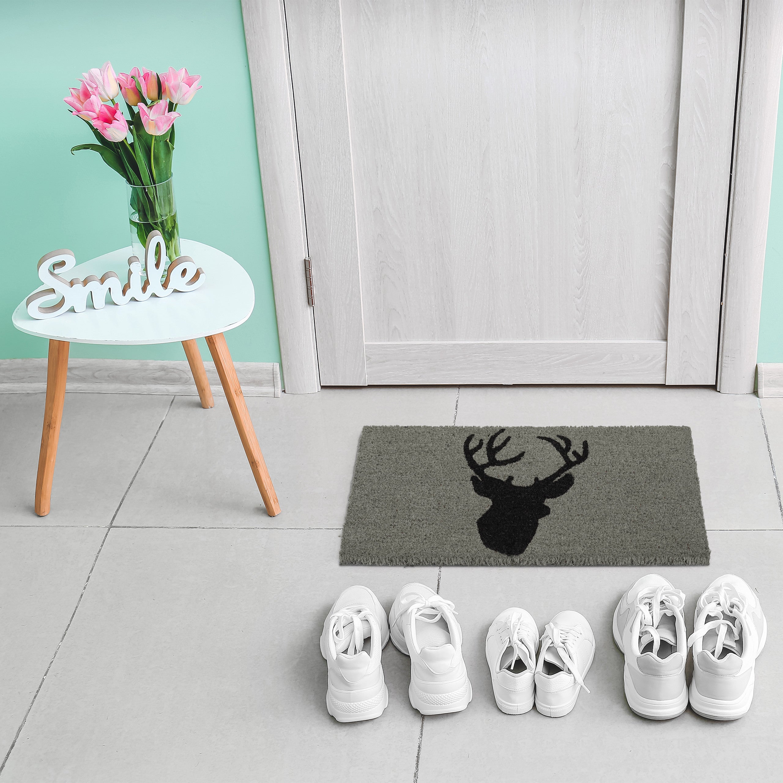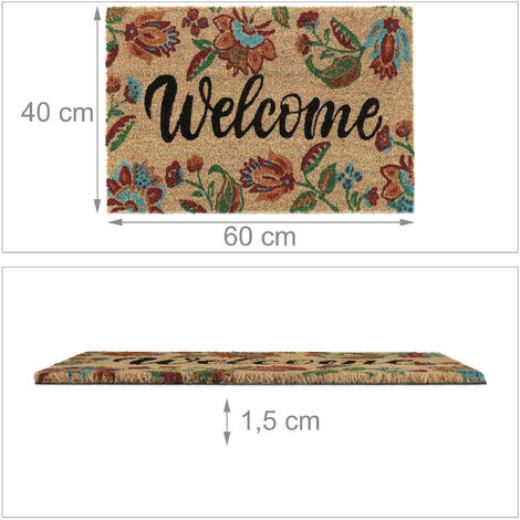 Universel: Paillassons pour l'intérieur et l'extérieur - Élément décoratif pratique pour la maison Essuie-pieds Robuste Relaxdays Paillasson En Caoutchouc Et Fibres De Coco, Antidérapant Tapis Naturel Intérieur Extérieur Description du produit Avec ce paillasson original avec des cerfs, des montagnes et des arbres, vous pouvez mettre un sourire sur le visage de vos invités avant même qu'ils n'ouvrent la porte. Tapis essuie-pieds XL - Tapis, Tapis paillasson - Éléphant Maison Le dessous est en PVC antidérapant, de sorte que la semelle de la chaussure reste à sa place d'origine. 1,5 kg- Matériau : fibre de coco, PVC- Couleur : nature, noirPaillasson antidérapant pour votre intérieur- Convient pour une utilisation intérieure et extérieure- Plus de saleté dans votre intérieur- Résistant à l’eau et robuste- Revêtement antidérapant en PVC- Paillasson pour vos invitésContenu de la livraison- 1x Paillasson- Livré sans objet de décoration Avertissement De Sûreté Attention : ce produit contient des matériaux naturels qui peuvent provoquer des réactions allergiques chez certaines personnes. Relaxdays Paillasson coco, 40x60 cm, tapis d’entrée motif papillon, antidérapant, intérieur et... Cette matière première qui ne nuit pas à l'environnement se caractérise par ses propriétés de résistance aux intempéries et donne au paillasson un aspect naturel. Mais le paillasson ne marque pas seulement visuellement. Pour les amoureux de la nature : Paillasson pour l'entrée - décoré avec des cerfs, montagne & arbres Acheter ICI en ligne paillasson en fibres de coco Les fibres naturelles de noix de coco rendent le tapis de porte robuste et durable. Antidérapant: Tapis d'entrée dont la face inférieure est couverte de PVC - Paillasson adhère au sol