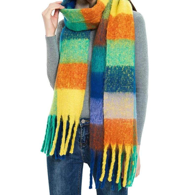 écharpe Unisexe Grand Format Miss Lulu Echarpes Femme Hiver Chaud En Carreaux Doux Foulard Châle écharpe épais Pull Châle Mode écharpe Longue Grand Unisexe Tartan Poncho Vintage Multicolore (Arc-en-ciel Châle Poncho Tartan Vintage Grosse écharpe épaisse d'hiver à carreaux orange et turquoise pour femme - Mon Beau Béret Écharpe femme chaud et large Châle Etole Foulard 200 x 70 cm.[Y917... Il est assez surdimensionné pour être porté comme un châle ou utilisé comme couverture de pique-nique pendant les activités d'automne et d'hiver, ce qui rend cette écharpe tendance, élégante et adaptable à une large gamme d'occasions. La façon de laver l'écharpe est à la main dans une eau inférieure à 30 degrés. Si vous voulez laver l'écharpe dans une machine à laver, veuillez mettre l'écharpe dans un sac de lavage. Une variété de couleurs, cette écharpe est facile à porter et assez polyvalente pour être assortie à presque toutes les tenues. Cela évite que l'écharpe ne s'entremêle avec d'autres vêtements et ne s'abîme. Occasion appropriée et cadeau parfait : vous pouvez porter cette écharpe en cachemire de différentes manières selon l'occasion et la saison. Parfait pour toute occasion quotidienne ou spéciale, fête, mariage, voyage, cérémonie ou soirée. Foulard Femme en Mousseline de Soie Écharpe Fleur imprimé Châle Doux...